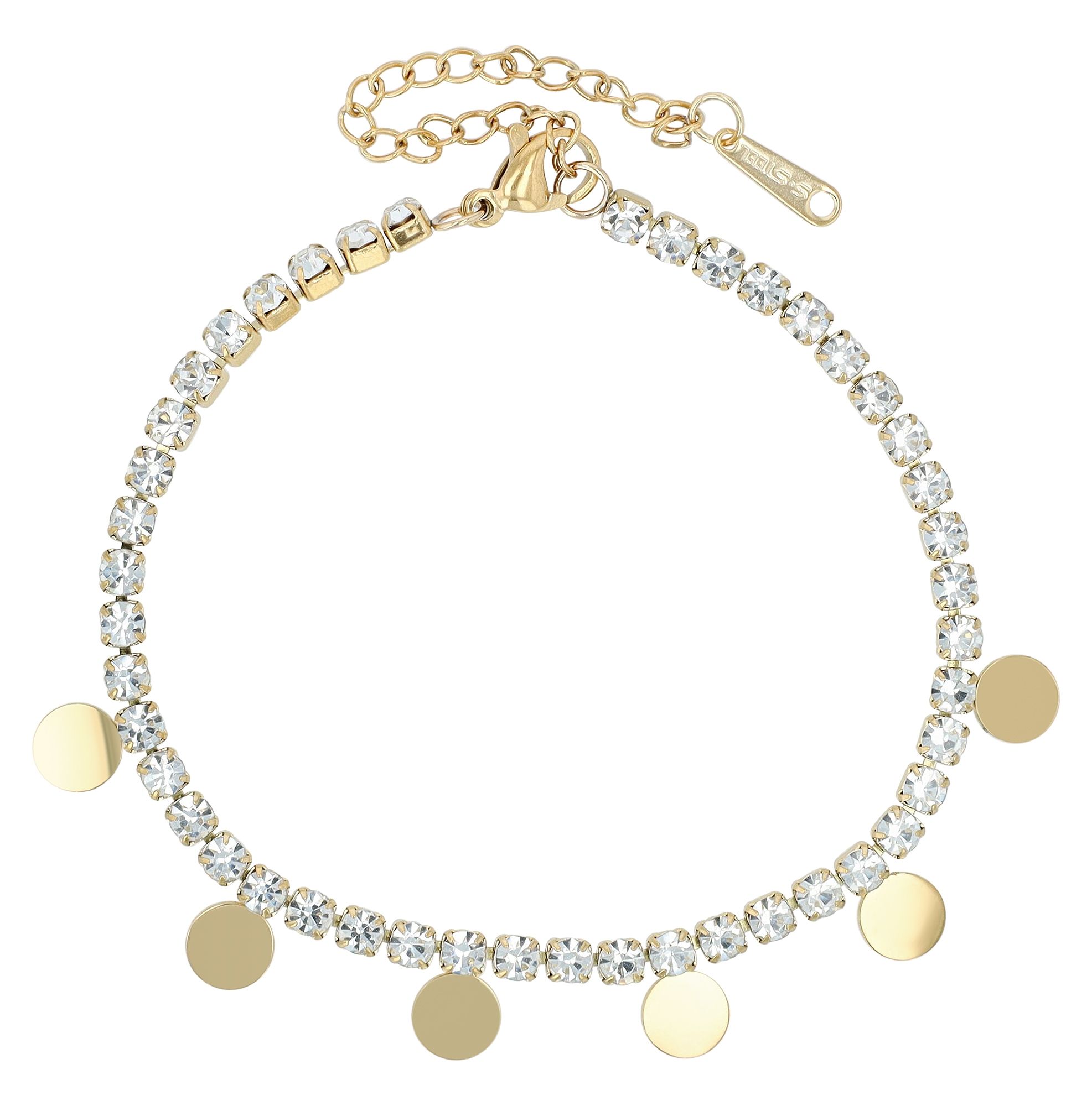Deze prachtige accent tennisarmband van hoogwaardig, goudkleurig geïoniseerd roestvrij staal is de perfecte combinatie van tijdloze glamour en individuele betekenis.
