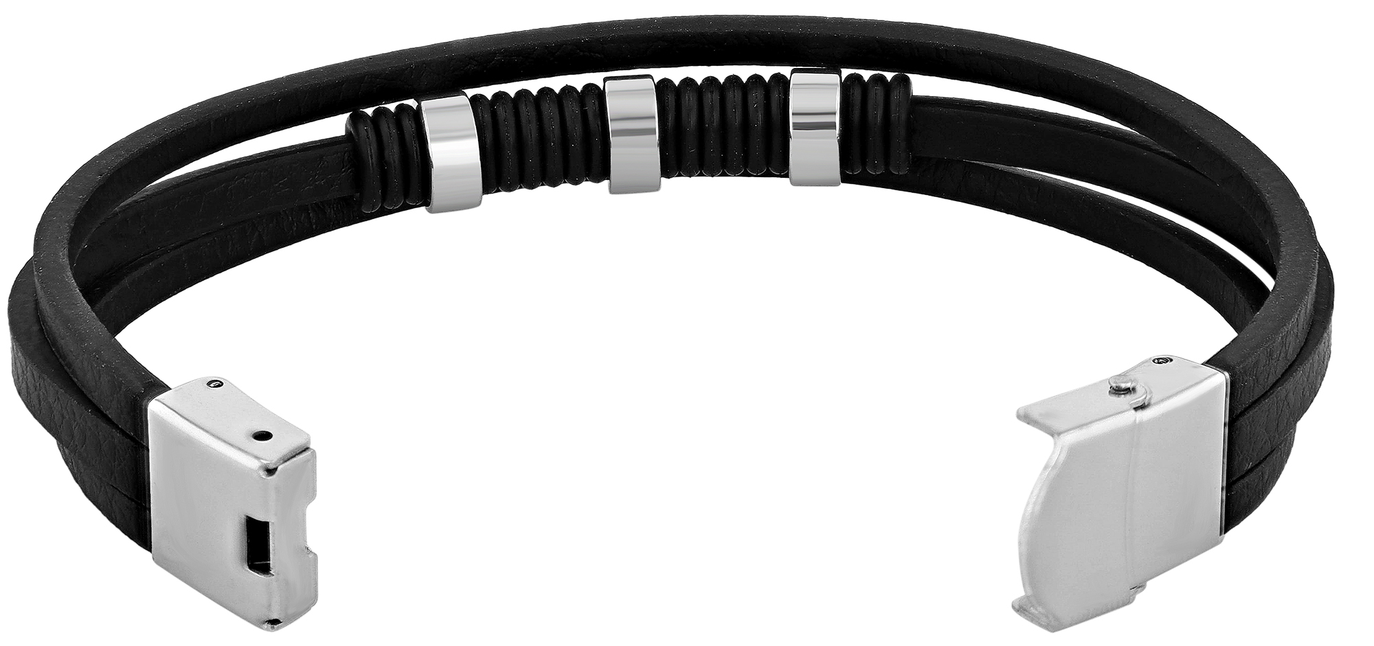 Productinformatie ""Thabo", Akzent Echtleder Armband, Edelstahlelemente, schwarz/silberfarben, 22,5 cm"