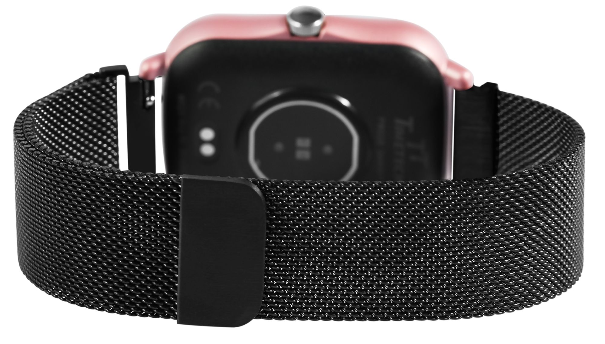 TimeTech Smartwatch mit Mesharmband, schwarz/rosa