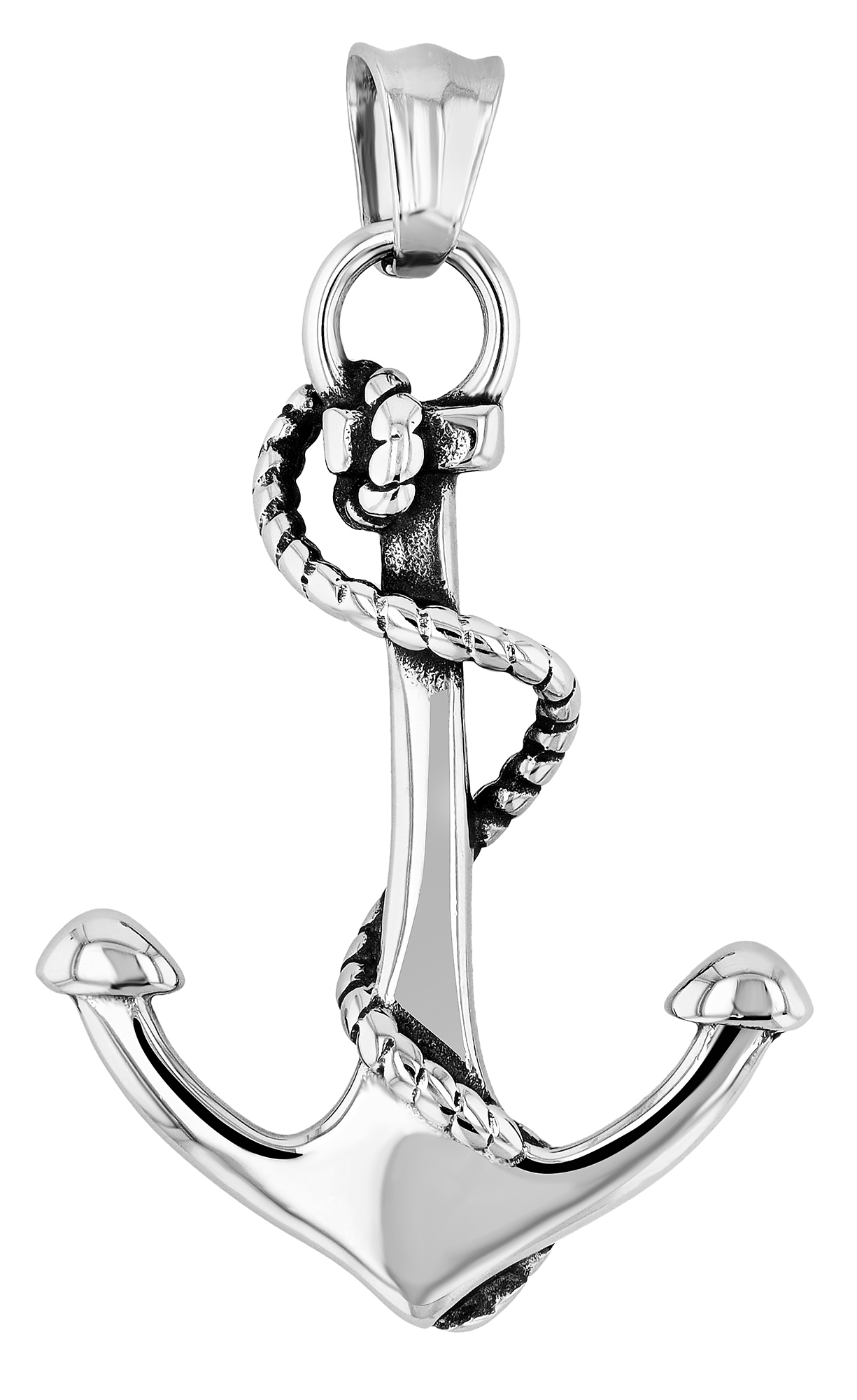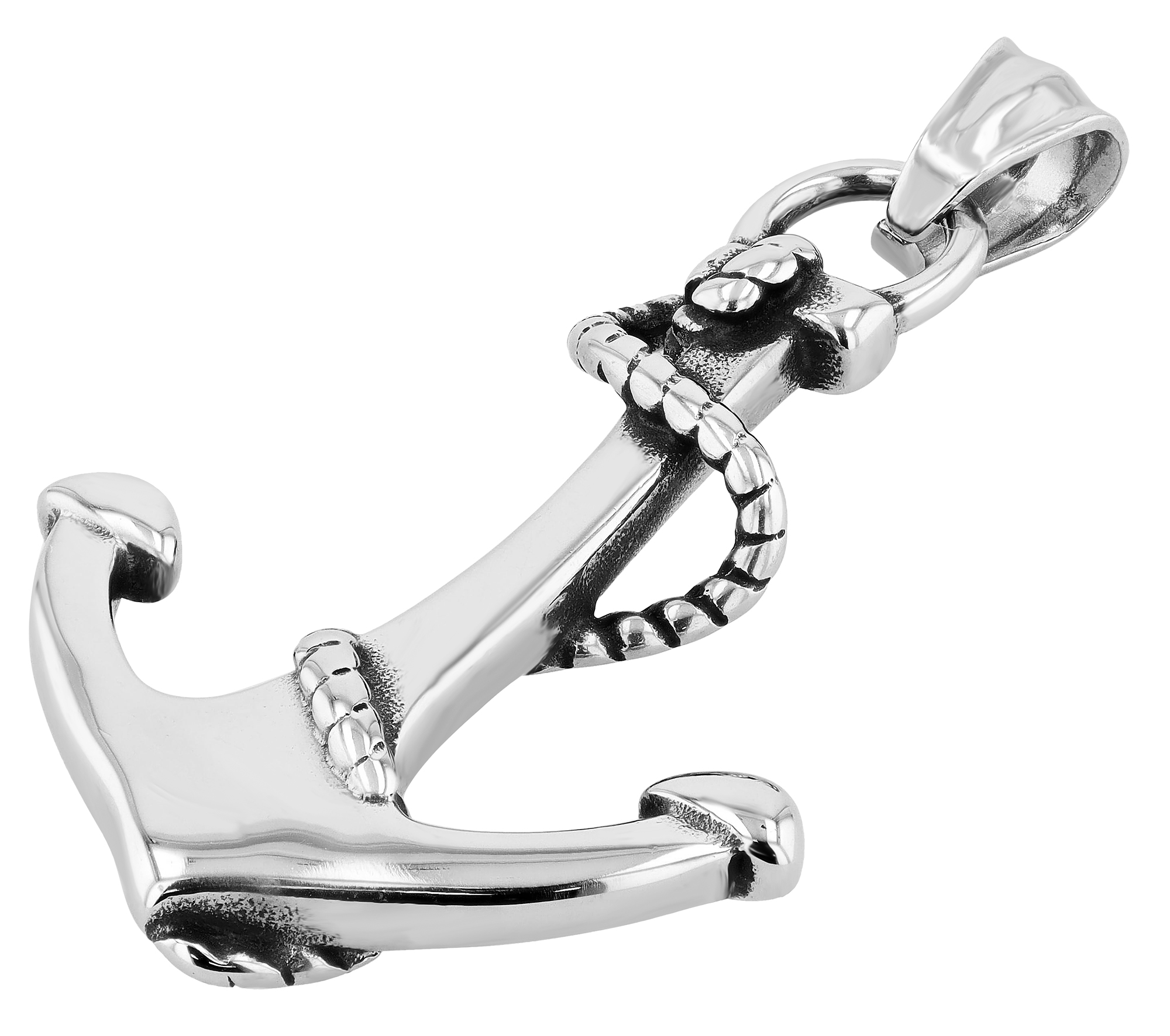Roestvrijstalen hanger voor mannen in zilver met zwarte accenten. "Tito" is stevig, groot en zwaar - een echt statement, welke hanger je ook kiest. Adelaar, anker met schedel, klassiek anker, mystieke slang, beschermende vleugel of opvallend kruis - elke hanger straalt kracht en karakter uit. Jouw look, jouw statement.