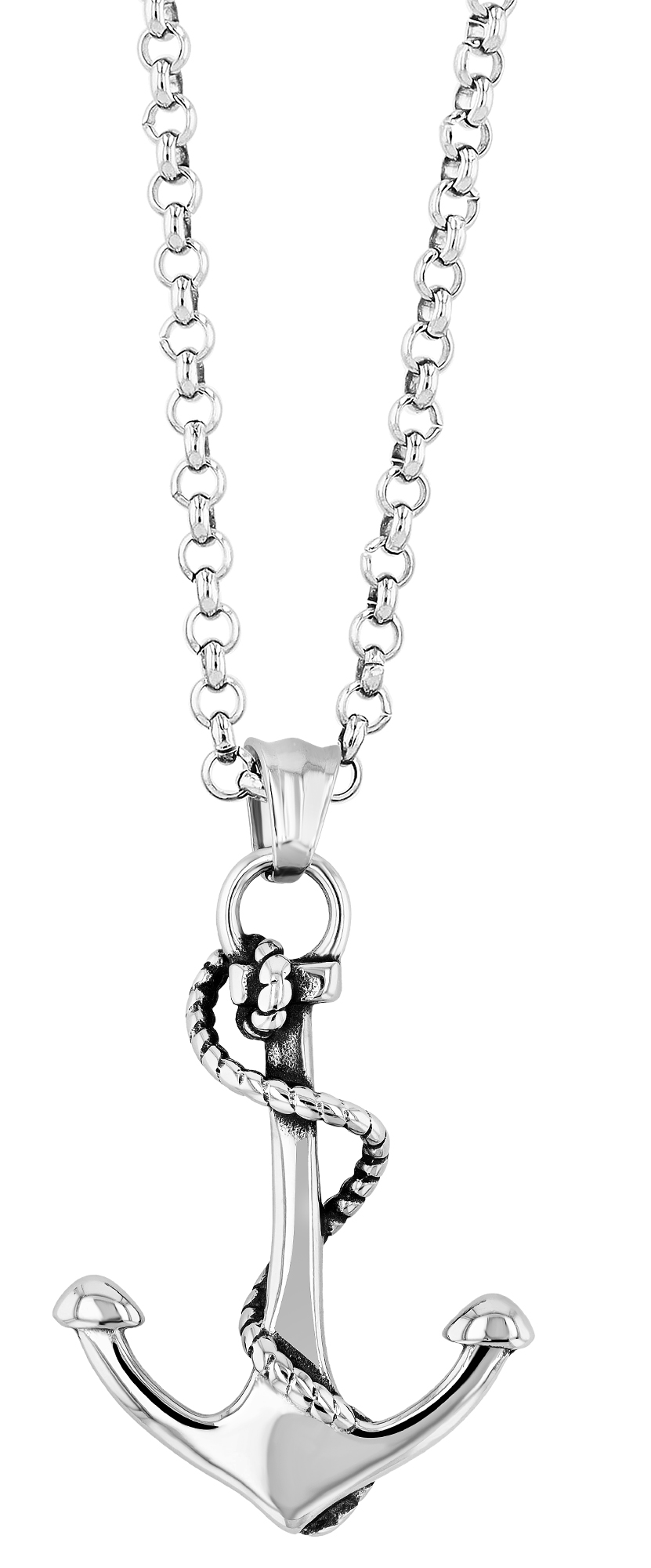 Productinformatie ""Tito", herenhanger van roestvrij staal, tweekleurig zilver/zwart, anker met touw"