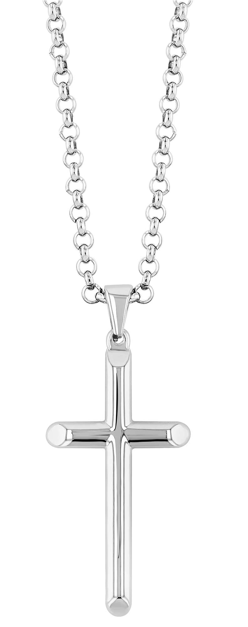 Productinformatie ""Tito", herenhanger van roestvrij staal, tweekleurig zilver/zwart, kruis"