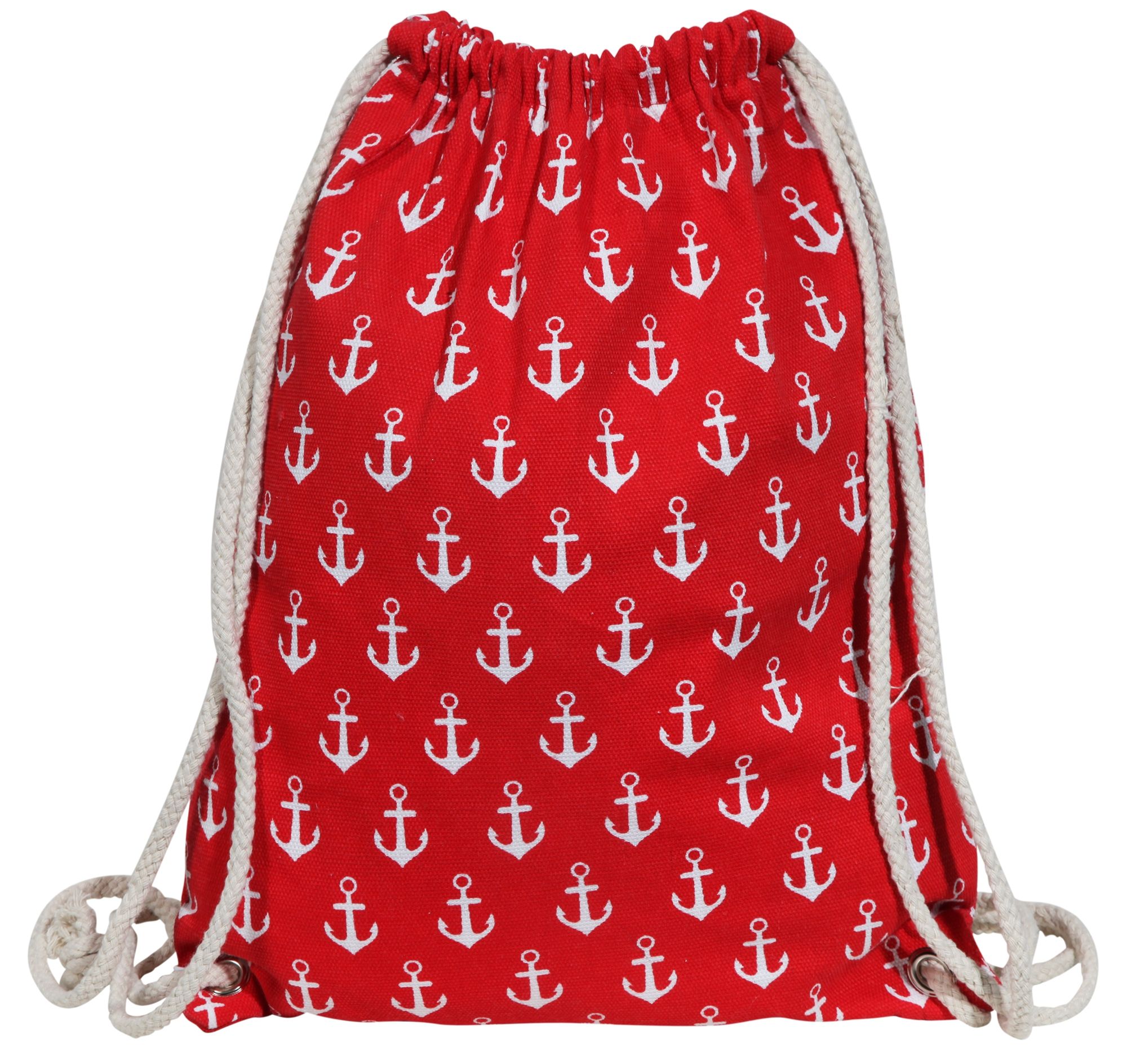 De maritieme sporttas is gemaakt van textiel en kan eenvoudig worden geopend en gesloten met twee gevlochten koorden door er simpelweg aan te trekken. De slijtvaste tas biedt veel opbergruimte en bewijst een trouwe metgezel te zijn voor de volgende reis of het dagelijks leven. De bedrukte ankers aan beide zijden van het materiaal maken van de rugzak een echte blikvanger. De afmetingen van het artikel zijn: lengte 40 cm, breedte 33 cm en hoogte 0,4 cm. De nautische gymtassen zijn verkrijgbaar in verschillende kleuren.