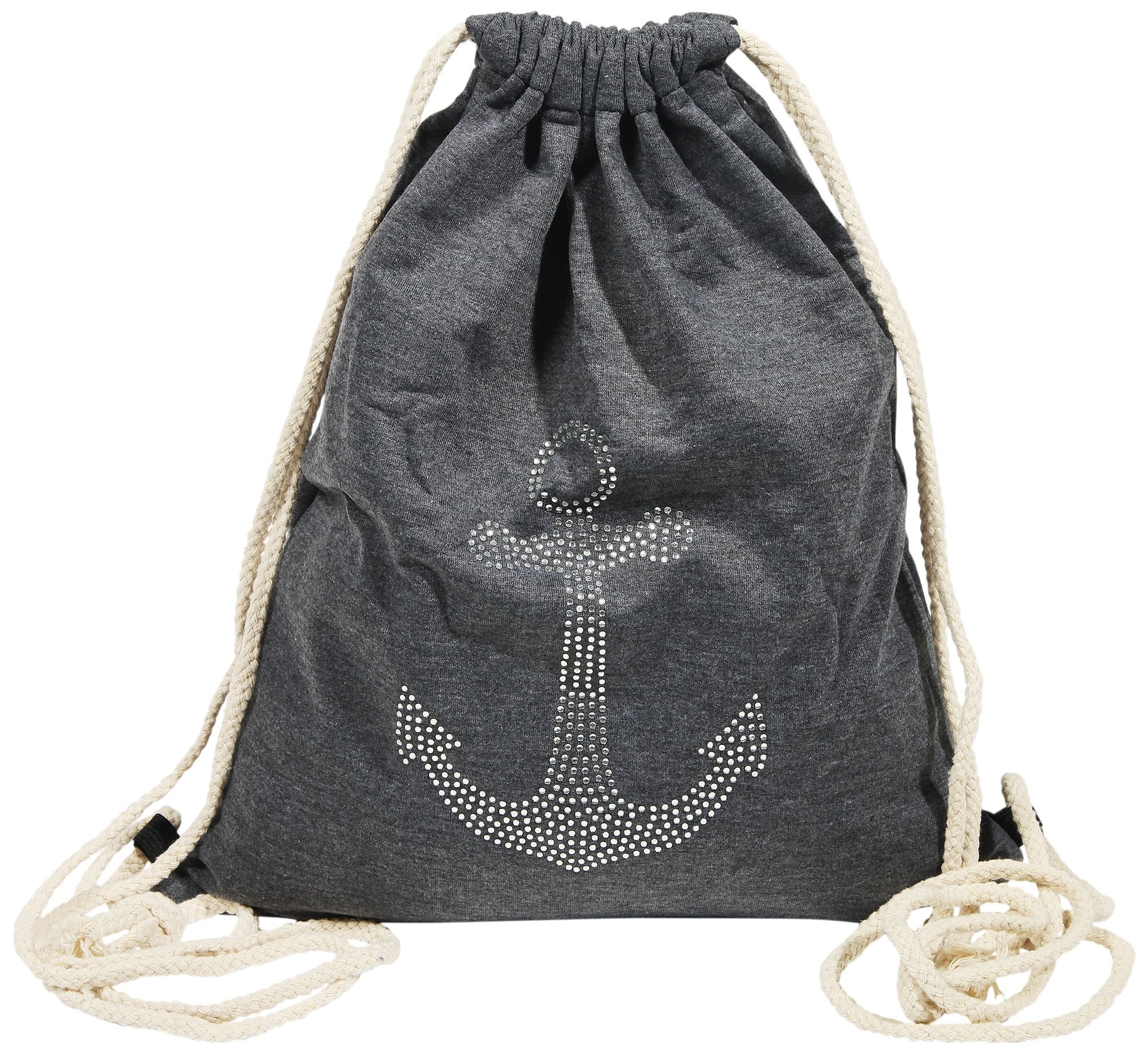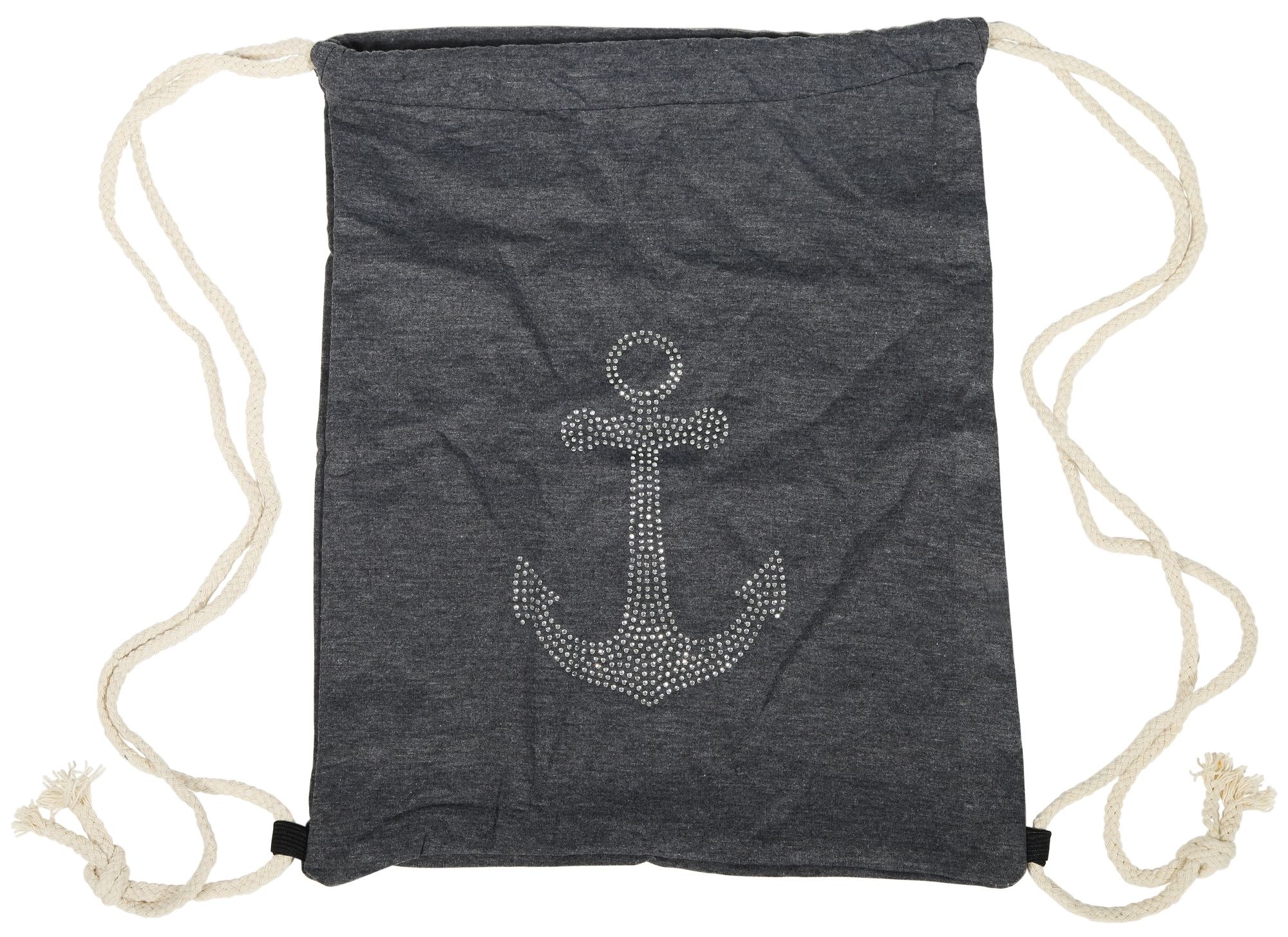 Productinformatie "Turnbeutel aus Textil, Anker mit Strass, grau"