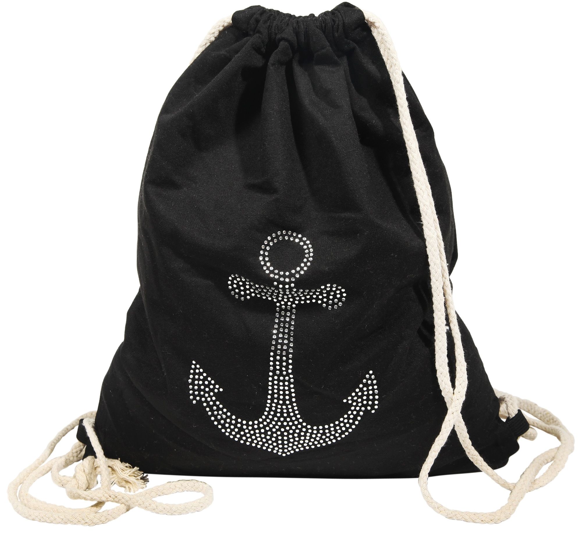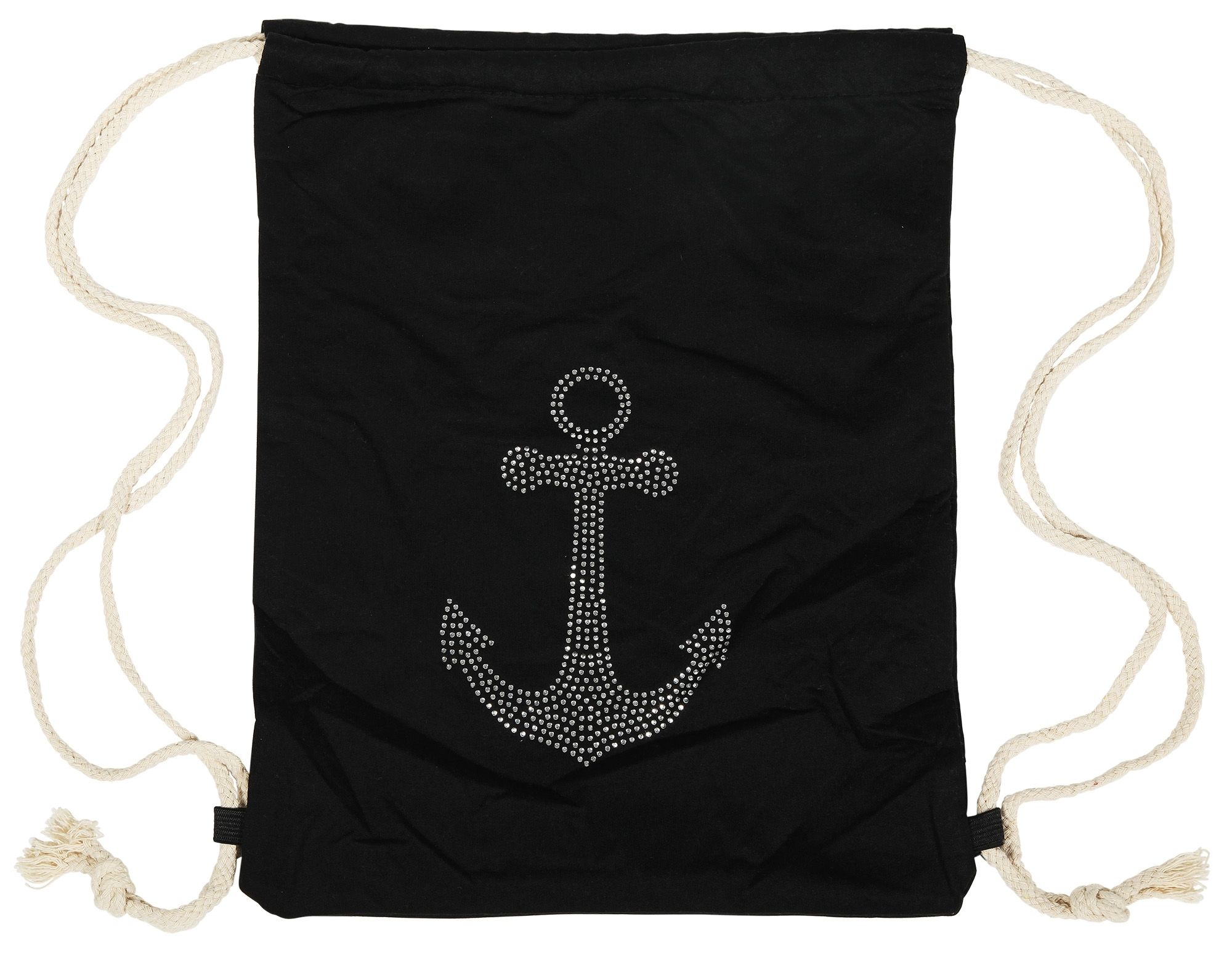 Productinformatie "Turnbeutel aus Textil, Anker mit Strass, schwarz"
