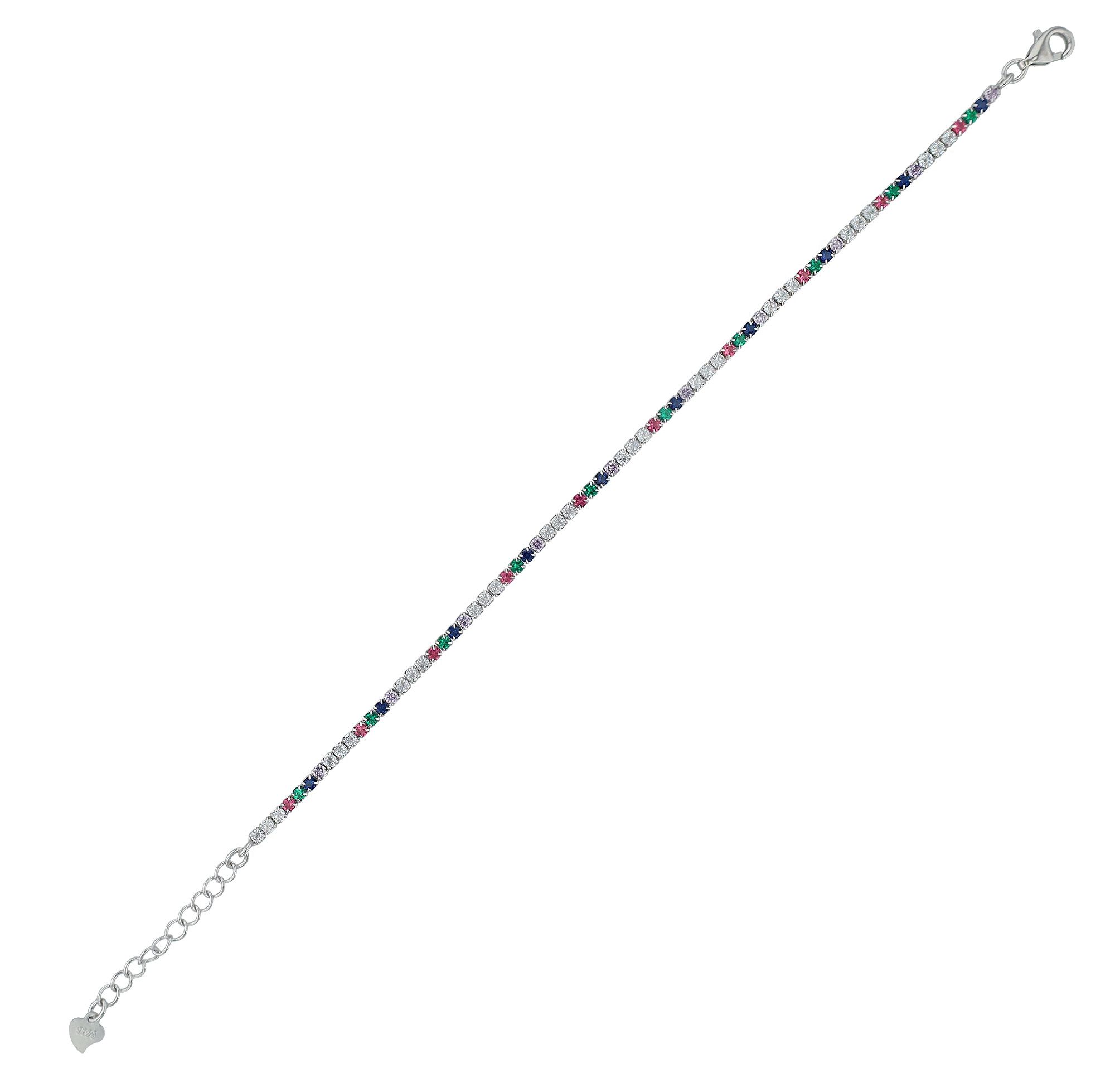 Productinformatie ""Twyla" 925/- echt zilveren tennisarmband met kleurrijke bies, gerhodineerd, 17 + 3 cm"