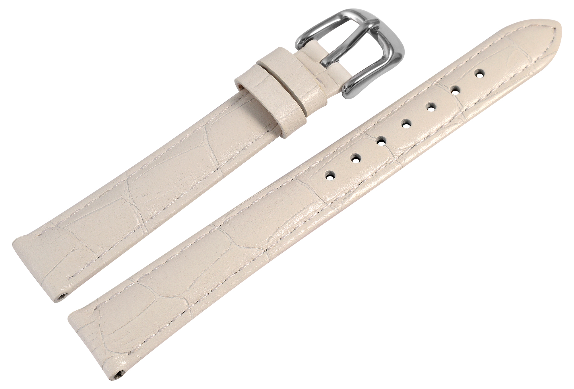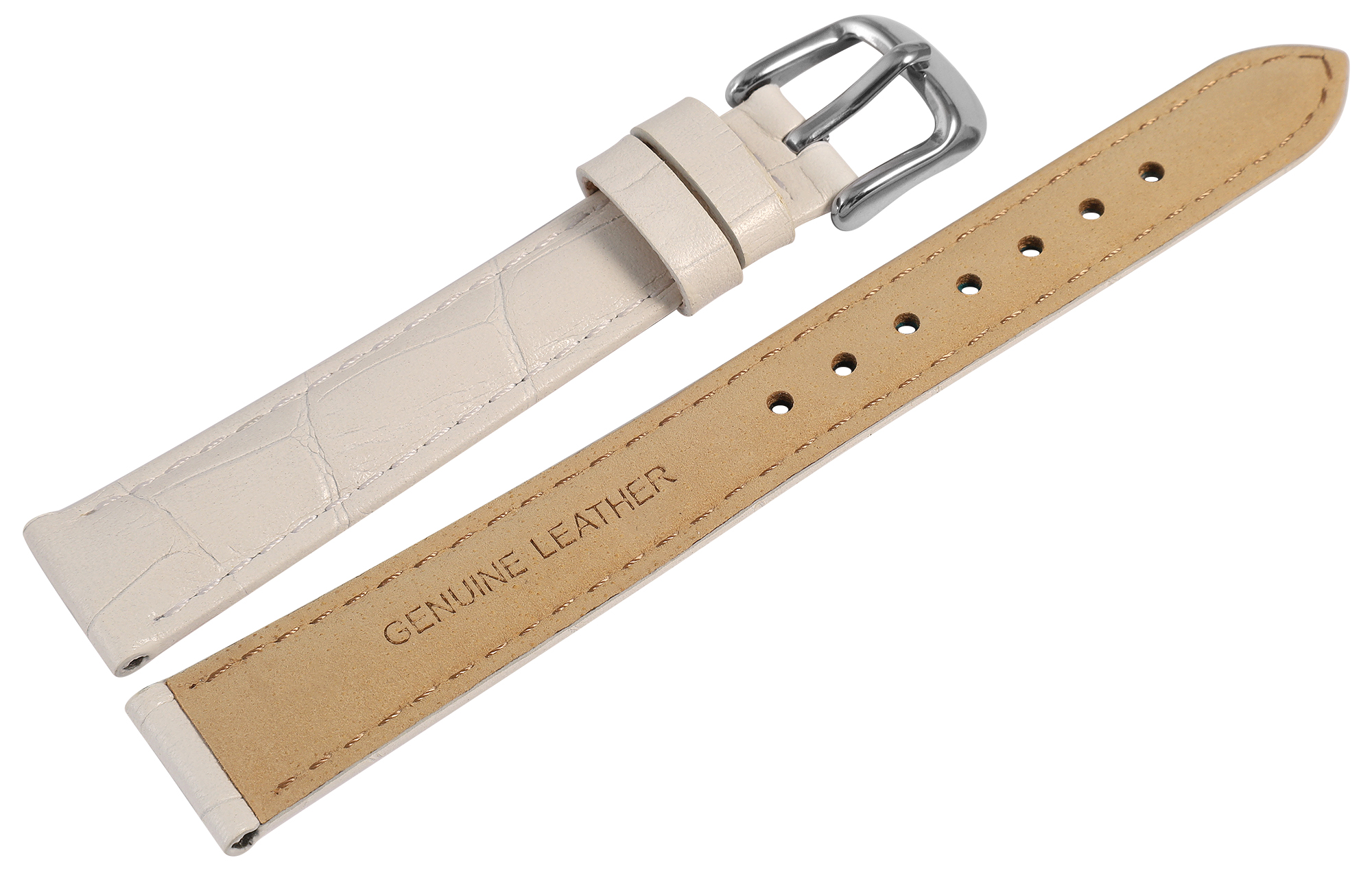 Productinformatie "Uhrenarmband aus Echt Leder, Kroko-Optik, weiß, 16 mm"