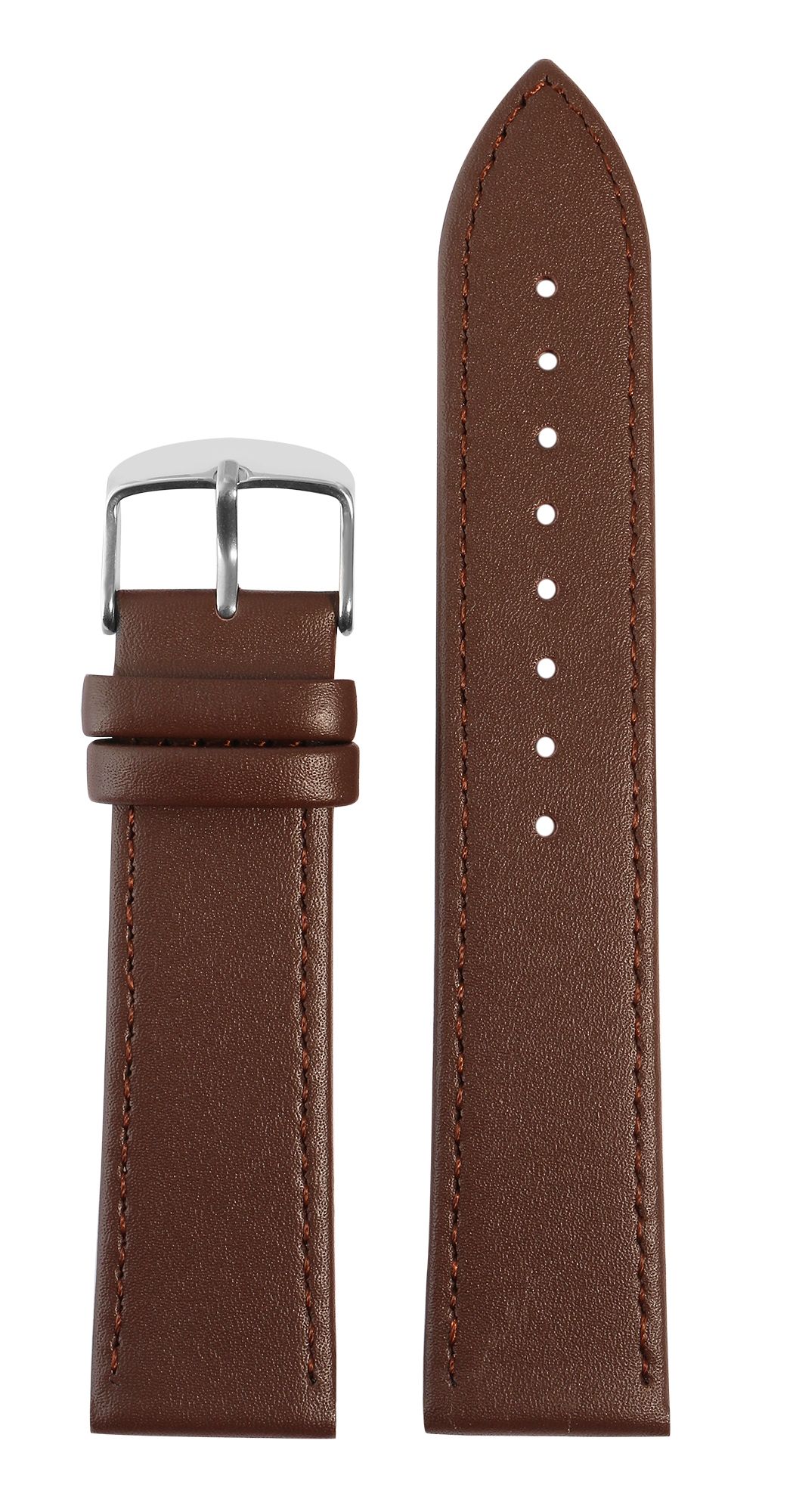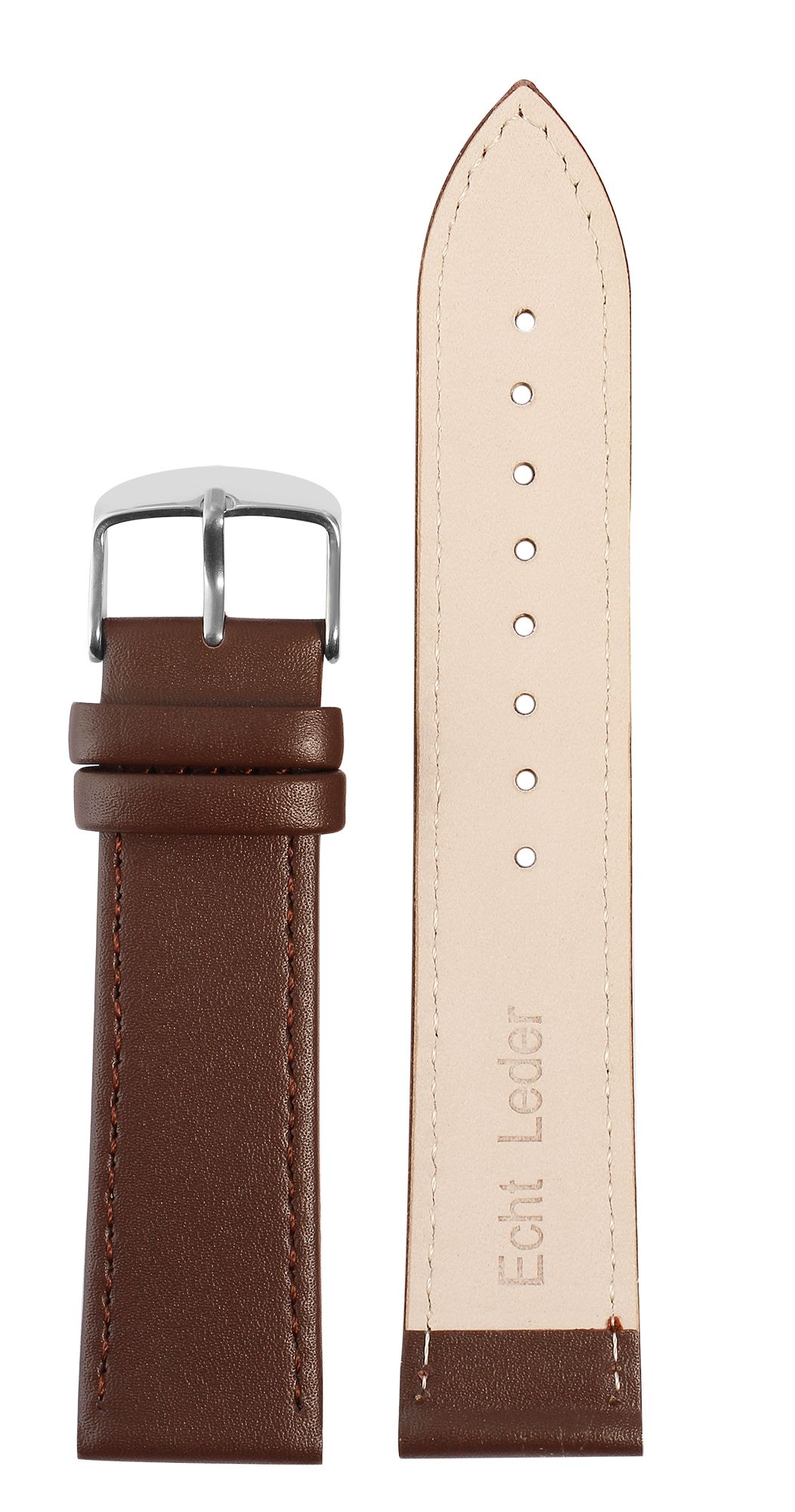 Productinformatie "Uhrenarmband aus Echtleder, genäht, dunkelbraun, 18 mm"