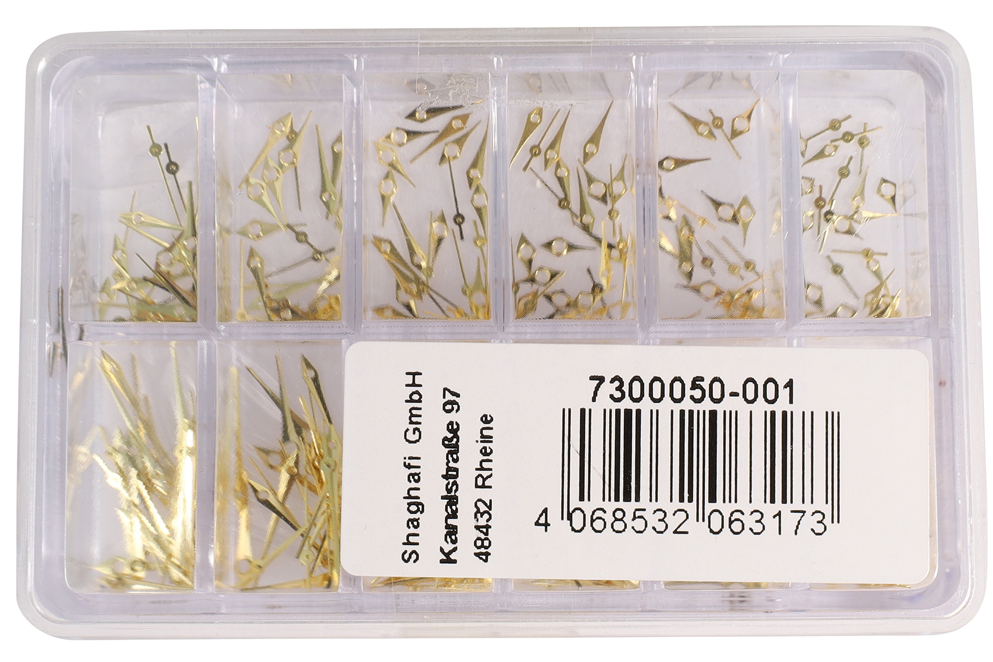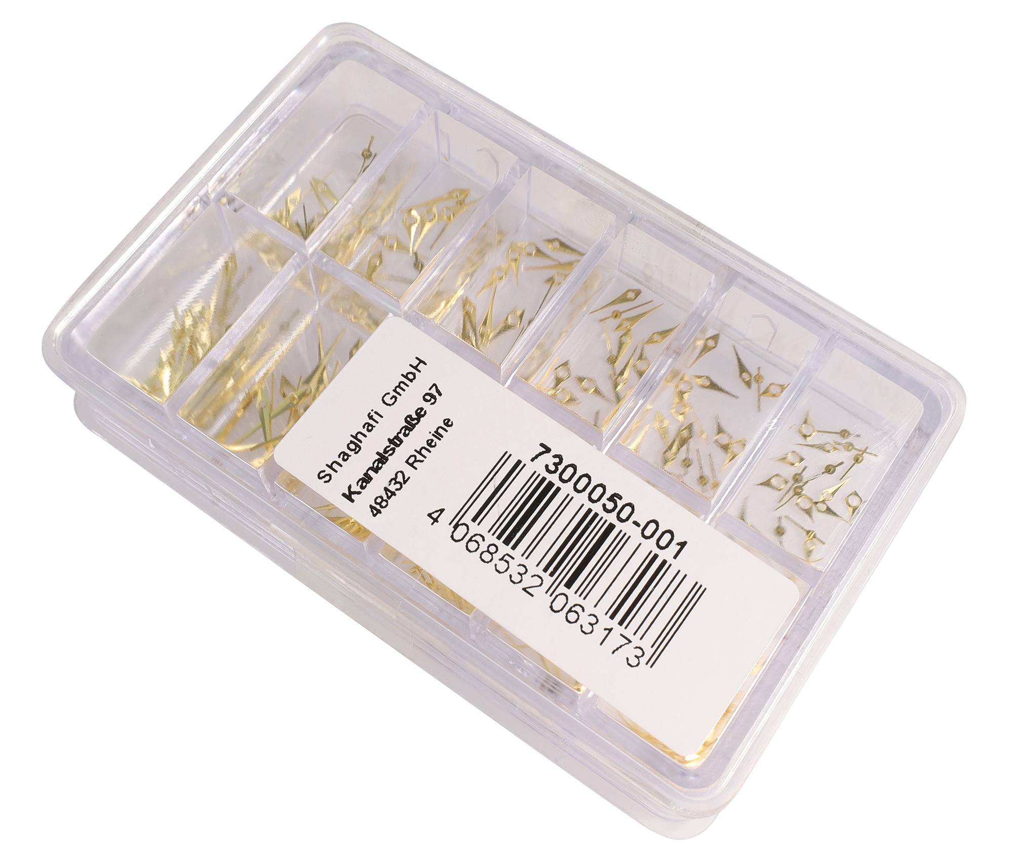 De sets zijn verkrijgbaar in goudkleurig, goudkleurig en zilverkleurig lichtgevend, roségoudkleurig en zilverkleurig in een plastic doos met 12 compartimenten, die elk wijzers van verschillende grootte bevatten, zodat je precies de juiste maat bij de hand hebt voor je reparaties.