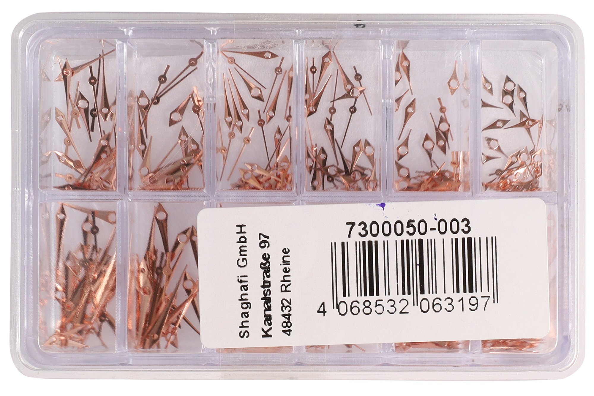 De sets zijn verkrijgbaar in goudkleurig, goudkleurig en zilverkleurig lichtgevend, roségoudkleurig en zilverkleurig in een plastic doos met 12 compartimenten, die elk wijzers van verschillende grootte bevatten, zodat je precies de juiste maat bij de hand hebt voor je reparaties.