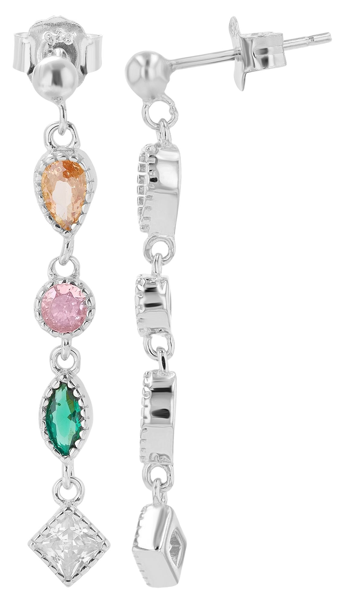 Productinformatie ""Vada" 925/- echt zilveren knop/hanger oorbellen, kleurrijke zirkonia's, zilverkleurig gerhodineerd"