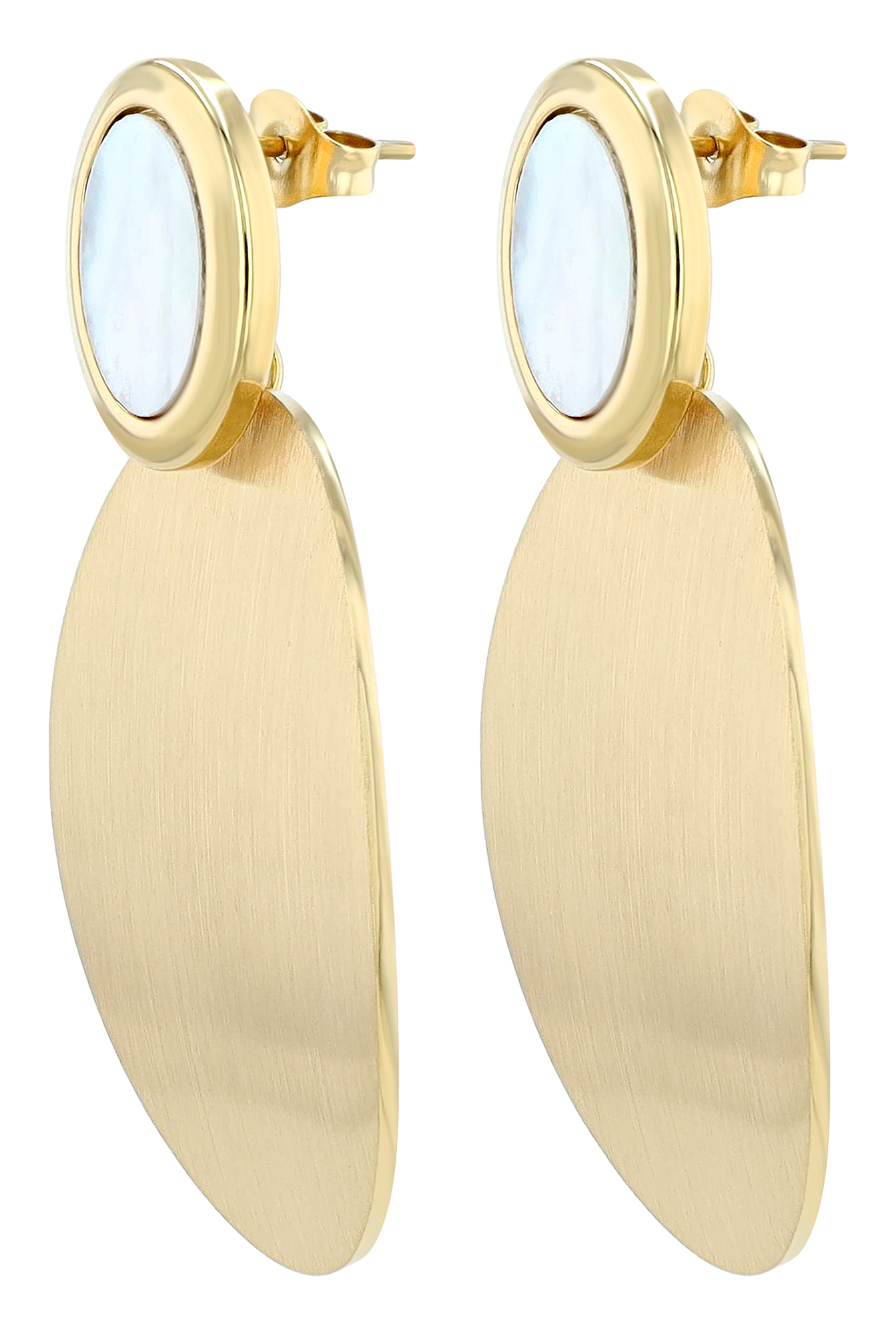Productinformatie ""Valborga" Edelstahl Statement Ohrstecker mit Perlmutt, goldfarben"