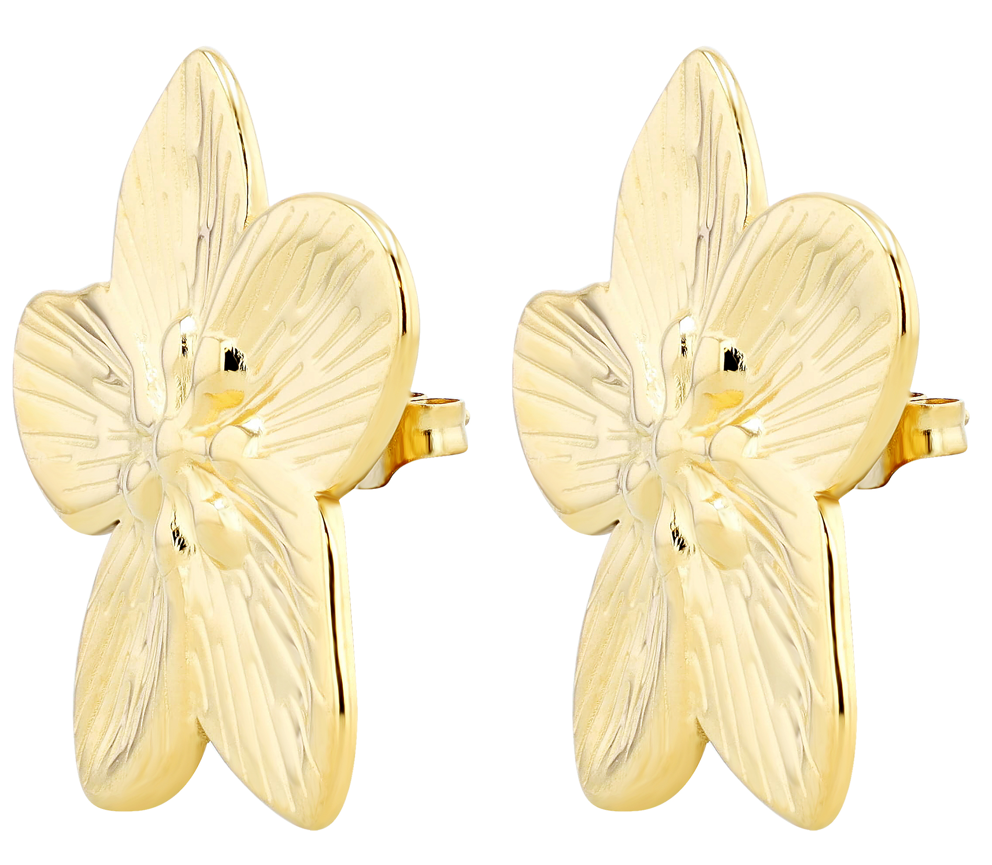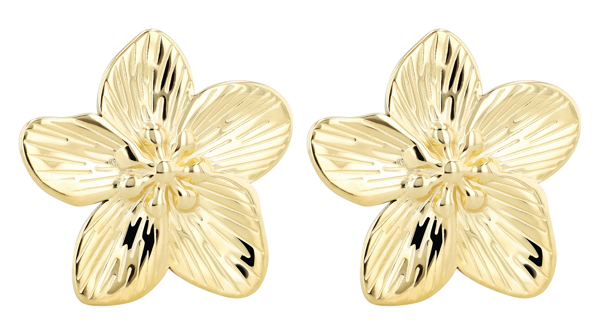 Productinformatie ""Valea " Stainless steel oorbellen - bloem, statement, goudkleurig"