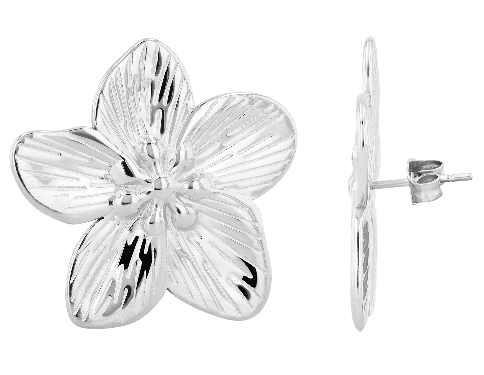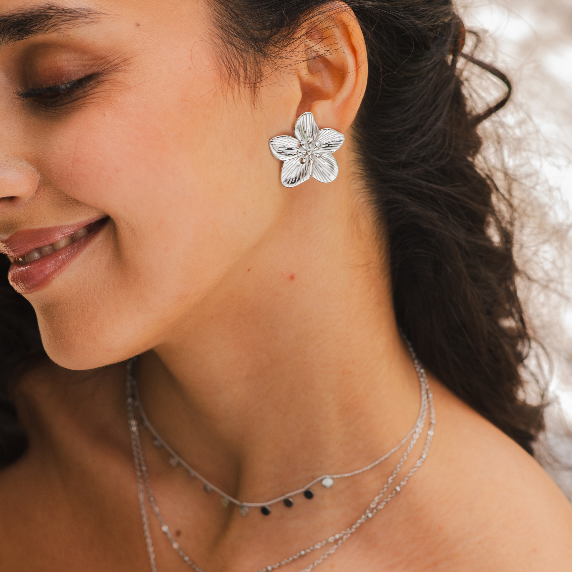 Productinformatie ""Valea " Stainless steel oorbellen - bloem, statement, zilverkleurig"