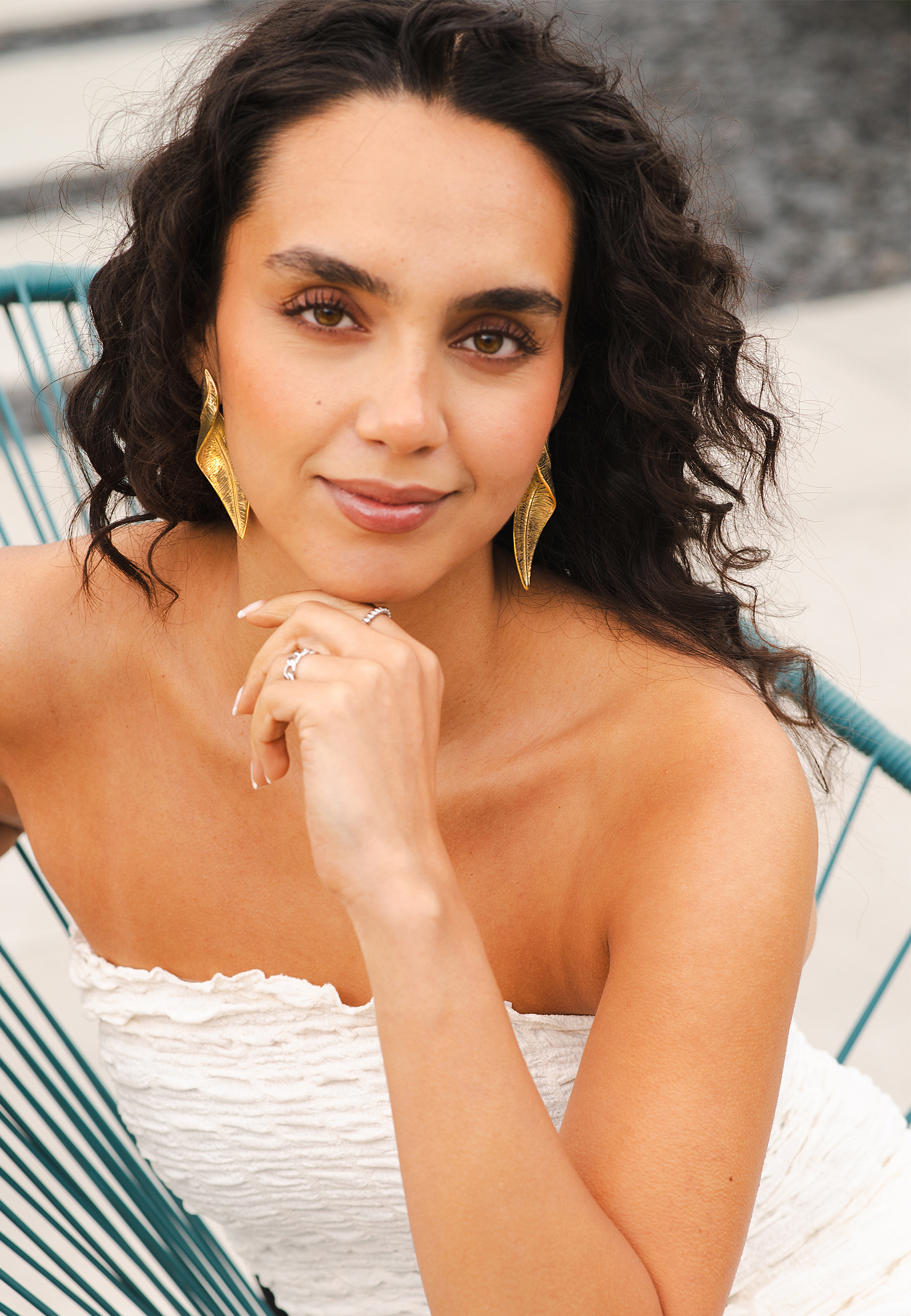 "Valka" roestvrijstalen oorstekers, hangend, gebogen blad
