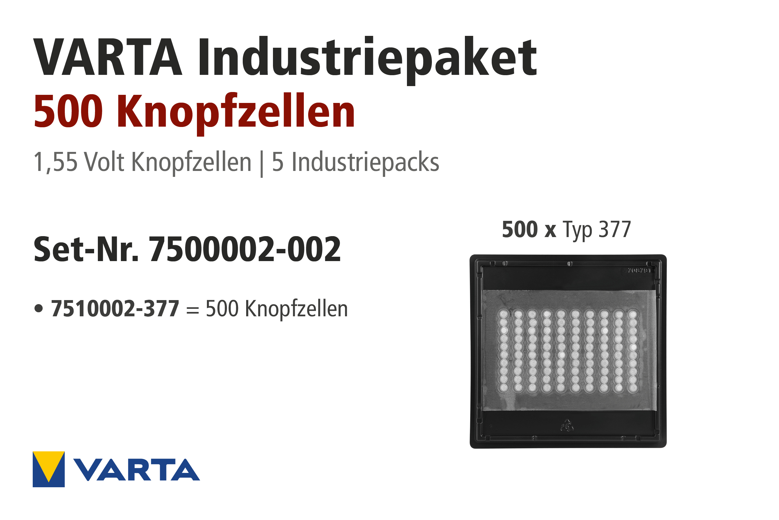 Merk: Varta Type: Knoopcel Batterijmateriaal: Zilveroxide Spanning: 1,55 V Toepassingen: Horloges, rekenmachines, speelgoed, afstandsbedieningen of zaklampen Inhoud verpakking: 100 stuks Verwijdering instructies.pdf