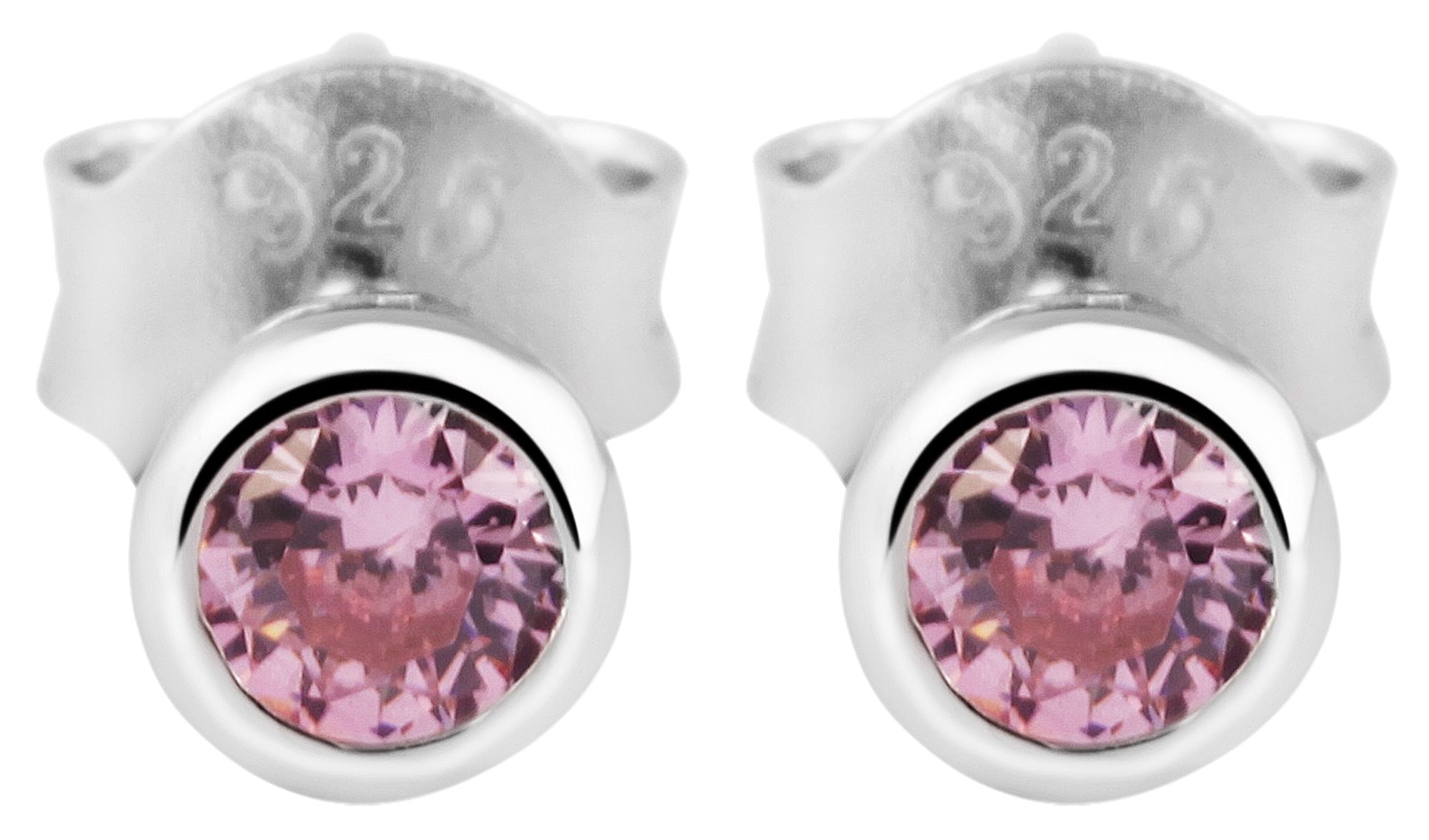 Productinformatie ""Velia" 925/- Echt Silber Kinder-/ Ohrstecker, rosa Zirkoniastein, rhodiniert"