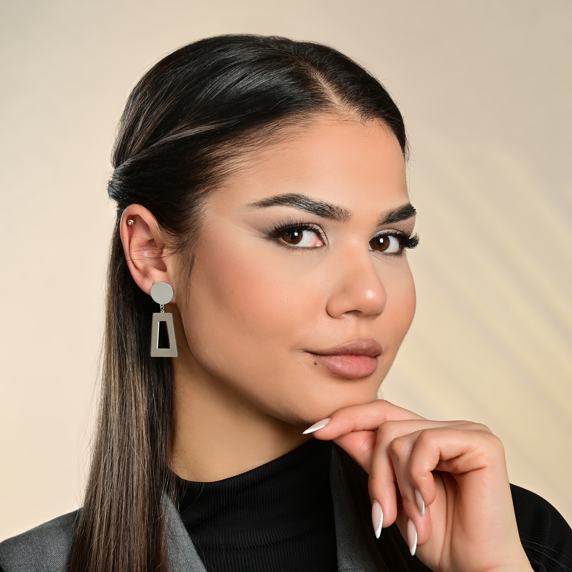 Deze elegante oorbellen van hoogwaardig roestvrij staal combineren strakke lijnen met tijdloze elegantie. Met een totale lengte van 45 mm, een ronde stud met een diameter van 20 mm en een hanger van 27 mm in een asymmetrische vorm, plaatsen ze een modern accent en geven ze het sieraad een interessant maar ingetogen design. De oorbellen zijn verkrijgbaar in twee elegante kleurvarianten - klassiek zilver of helder goud - en bieden eenvoudige elegantie met een vleugje extravagantie. De praktische clipsluiting garandeert draagcomfort en een betrouwbare grip. Een cadeautip voor elke gelegenheid en voor iedereen die een stijlvol statement wil maken.