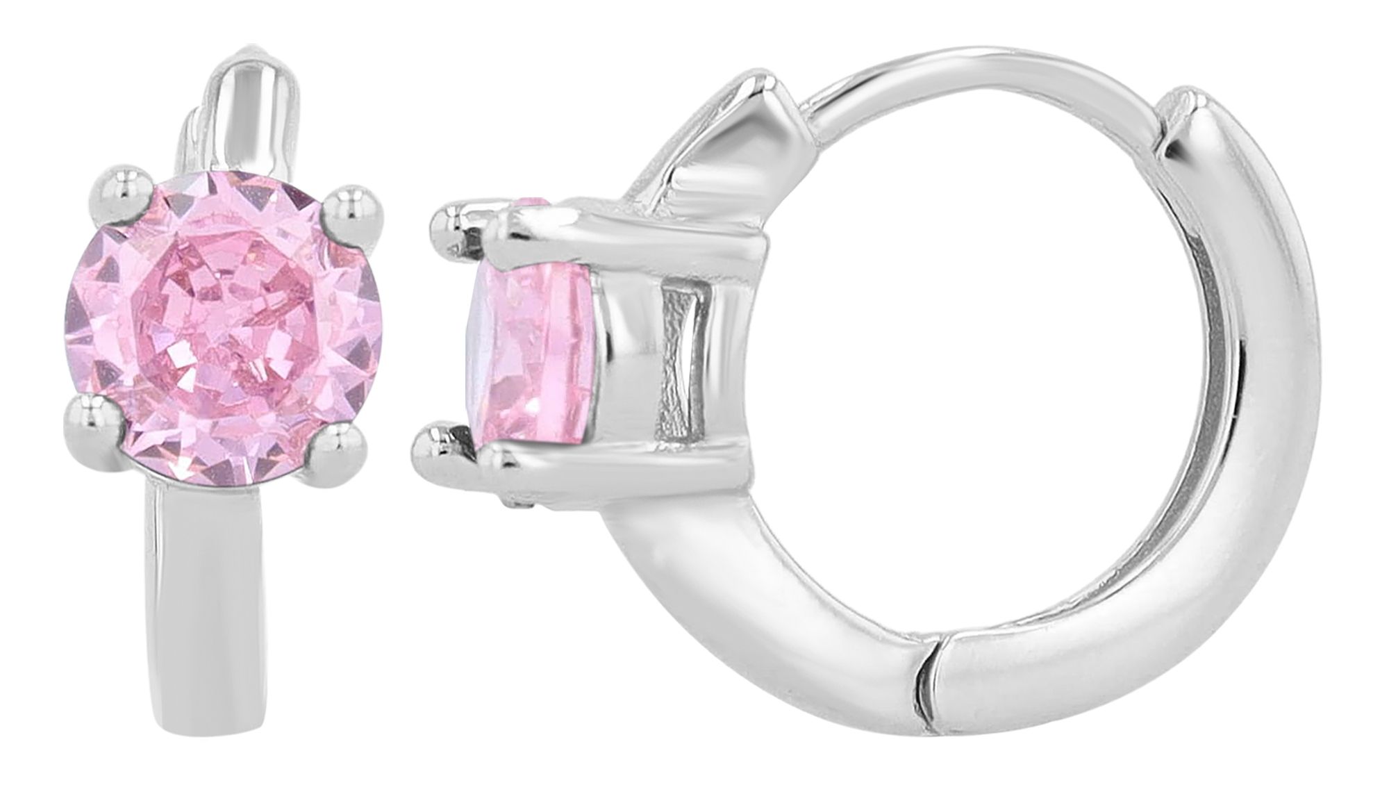 Productinformatie ""Victoria" 925/- Echt zilveren hoepel/ring oorbellen met roze zirkoon, zilverkleurig gerhodineerd"
