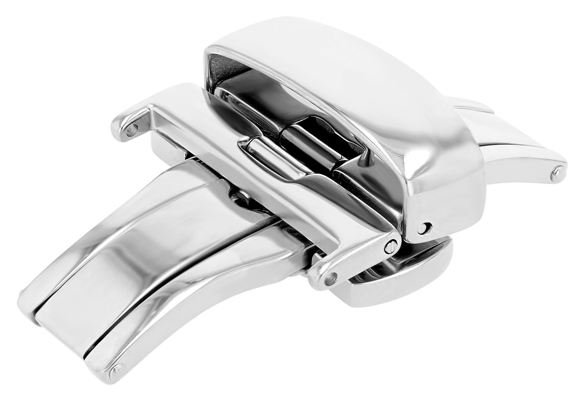 Een hoogwaardige optie voor horloges - onze roestvrijstalen vlindersluiting! Deze sluitingen zijn gemaakt van hoogwaardig materiaal en garanderen niet alleen duurzaamheid, maar ook weerstand tegen invloeden van buitenaf. Hierdoor blijft niet alleen de precisie van het horloge behouden, maar ook het uiterlijk. De vlindersluiting stelt normen op het gebied van draagcomfort en veiligheid. Hij kan moeiteloos worden geopend en gesloten en zorgt voor een betrouwbare bevestiging om de pols. Onze vlindersluitingen zijn verkrijgbaar in vier kleuren: zilver, goud, roségoud of zwart. De keuze tussen de vier kleuren en de 22 mm brede lug van de sluiting maken het een veelzijdige optie die in een breed scala aan horlogebanden kan worden geïntegreerd.
