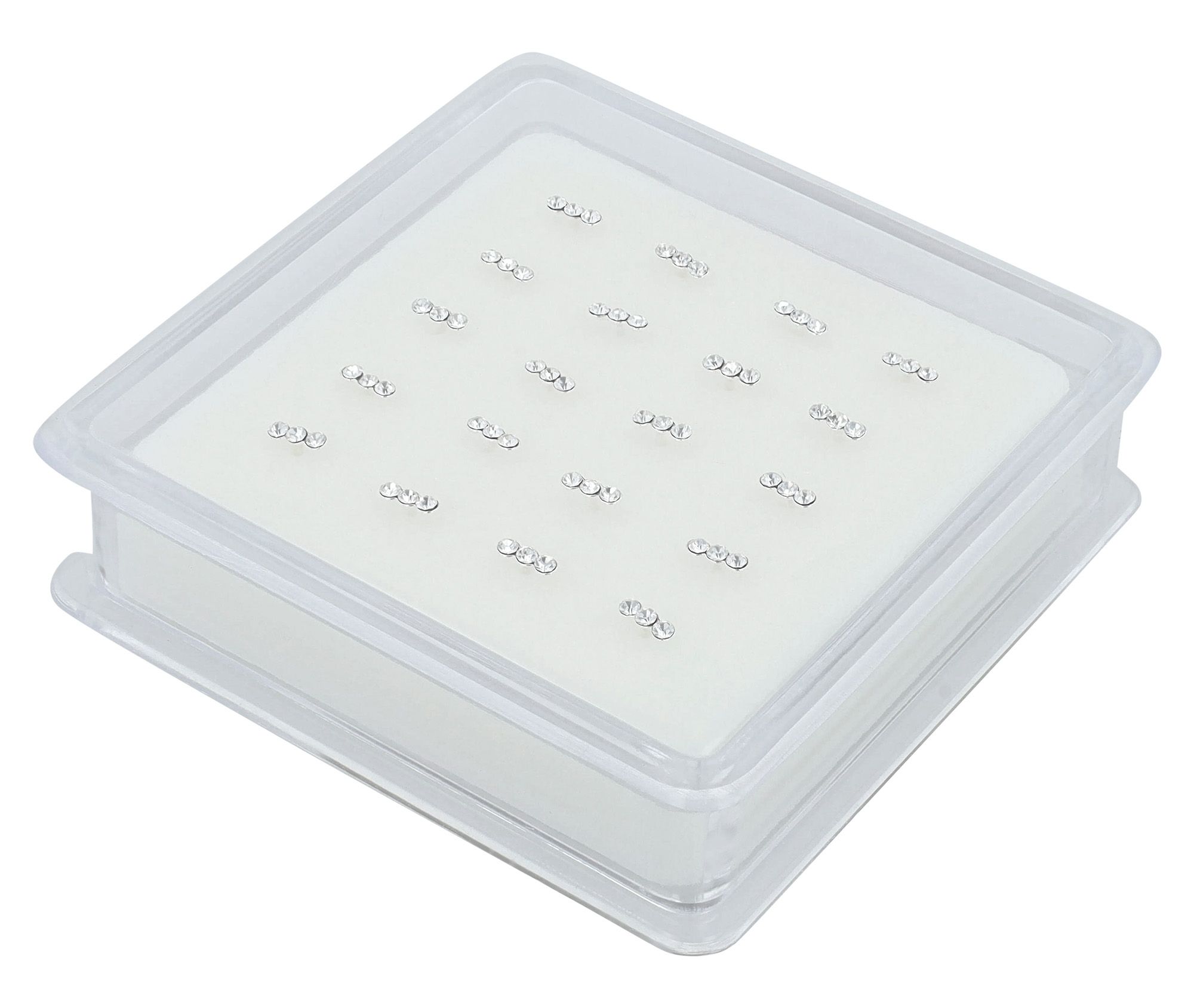 De neusknopen worden geleverd in een transparant doosje (6 x 6 x, 1,6 cm), dat niet alleen zorgt voor een nette en hygiënische presentatie, maar ze ook gemakkelijk te verwijderen maakt.