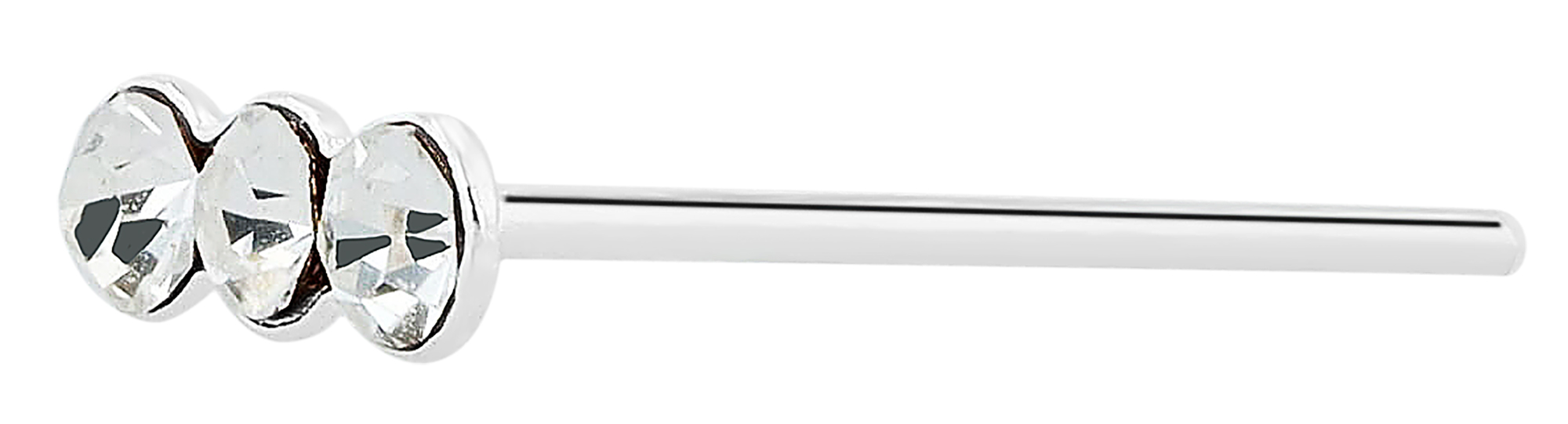 De I-vormige neusknopen met drie simili-stenen (kop 4,5 x 1,5 mm) - een delicaat en elegant sieraad.