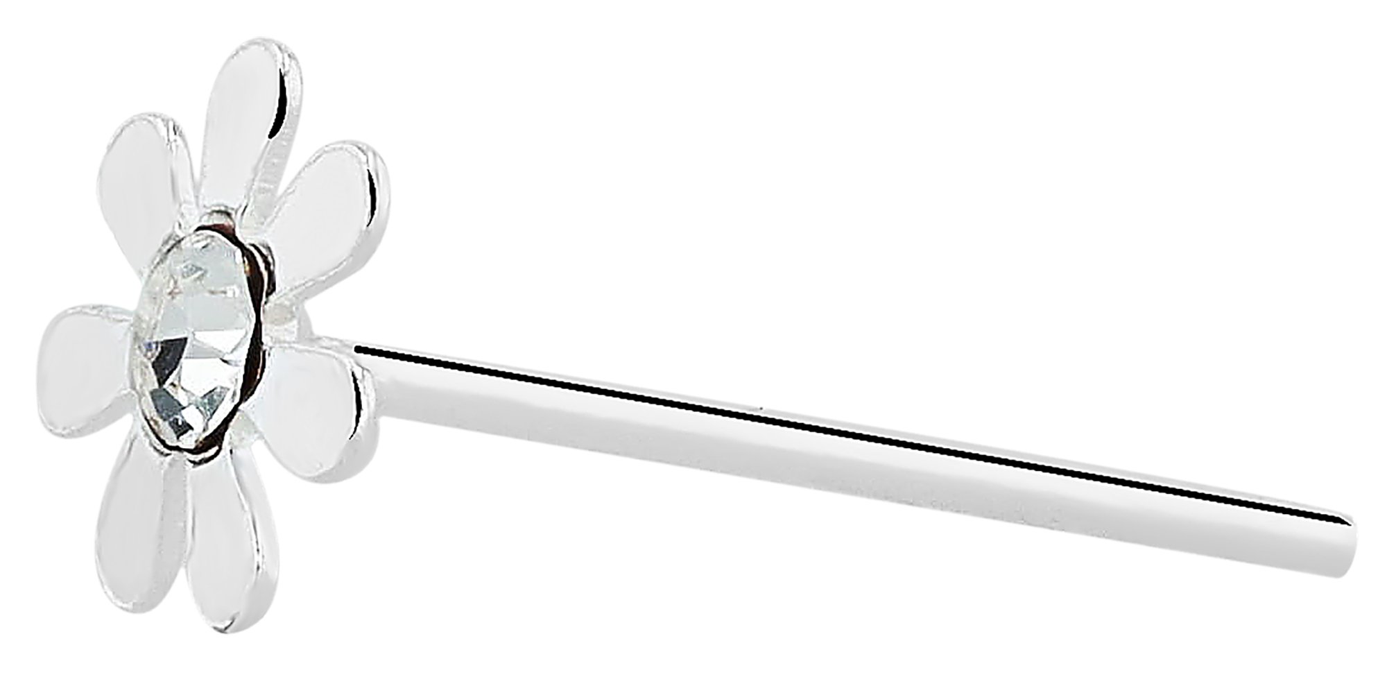 De kop van de piercing, een delicate bloem met een diameter van 4,5 mm, is in het midden versierd met een similietsteen. Deze eenvoudige en speelse neuspiercing is perfect voor iedereen die van elegantie en lichtheid houdt.