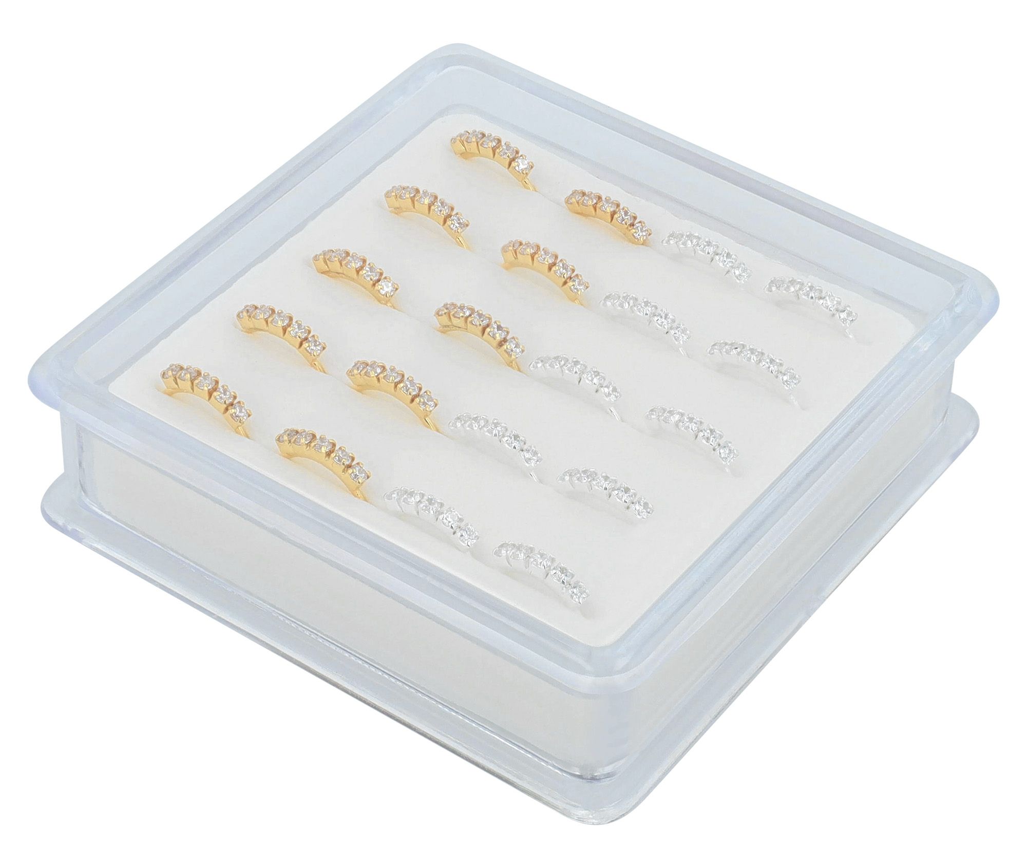 Volle" wordt geleverd in een praktische verpakkingseenheid van 20 stuks - deze set bevat twee kleurvarianten van de neusring, 10 zilver gerhodineerd en 10 verguld, zodat je klanten een gevarieerde keuze hebben.