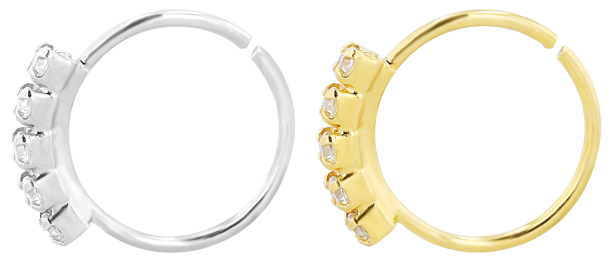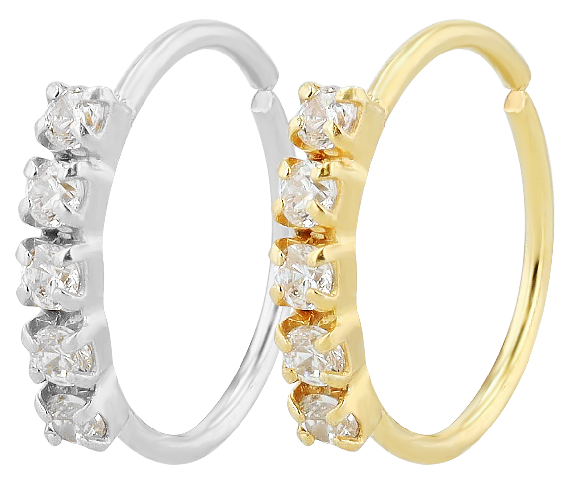 De open neusring heeft een ringdikte van 0,8 mm en een binnendiameter van ca. 9 mm, waardoor de ring flexibel is en dus individueel aan de drager kan worden aangepast. Het hoogtepunt zijn de 5 similistenen die de neusring versieren en voor een wow-effect zorgen.