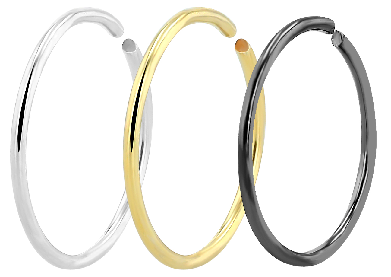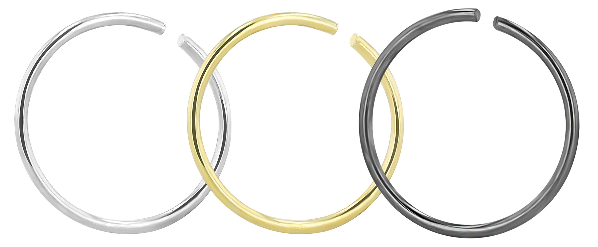 Productinformatie ""Voncia" open neusring/ neuspiercing, 925/- echt zilver, gerhodineerd, 3 variaties, PU-20 stuks"