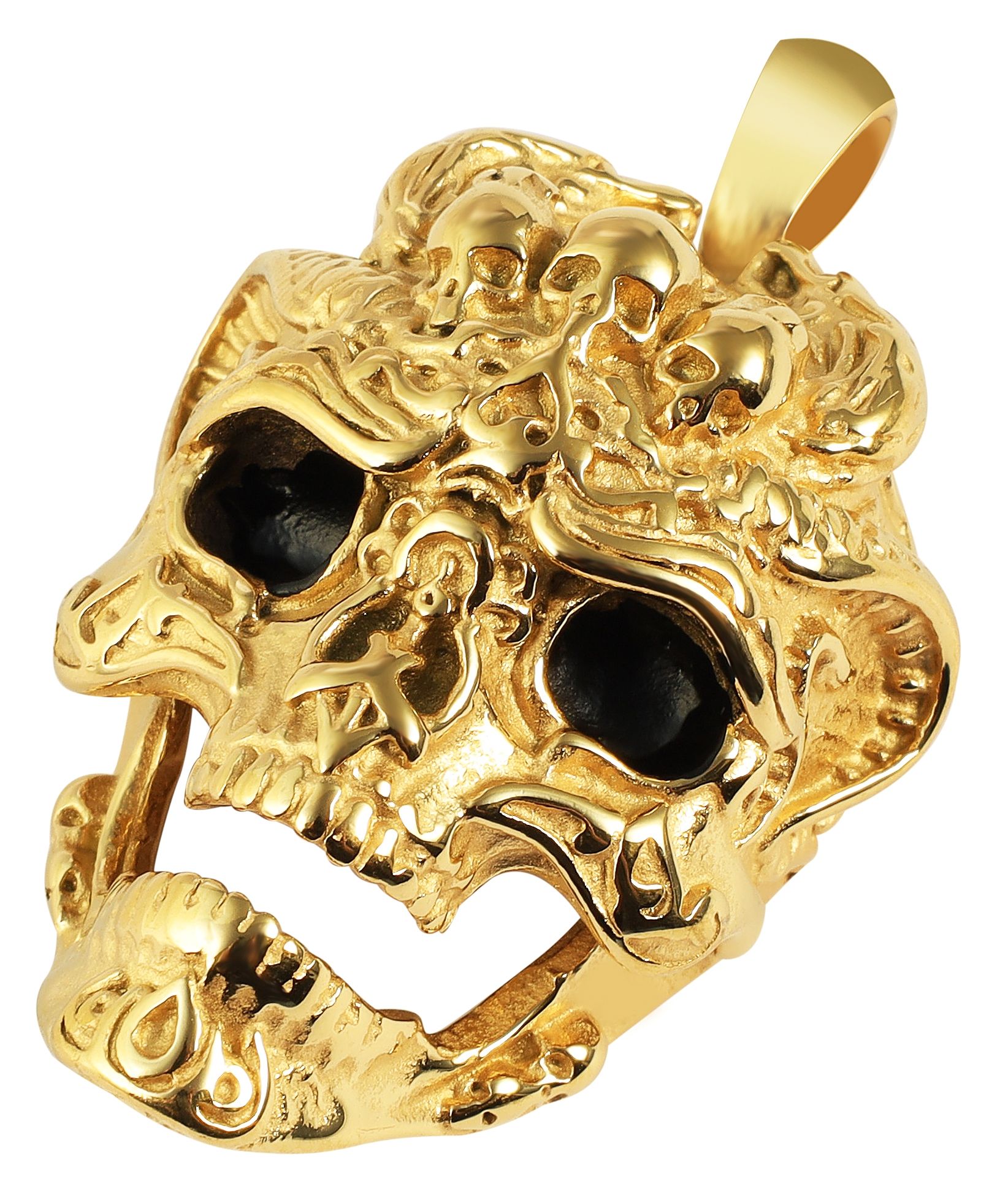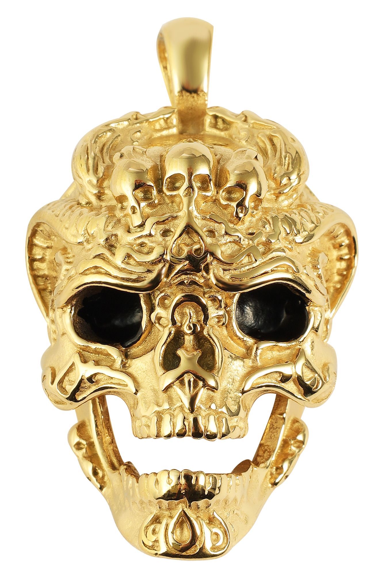 Productinformatie ""William" - schedel, roestvrijstalen hanger, IP goud"
