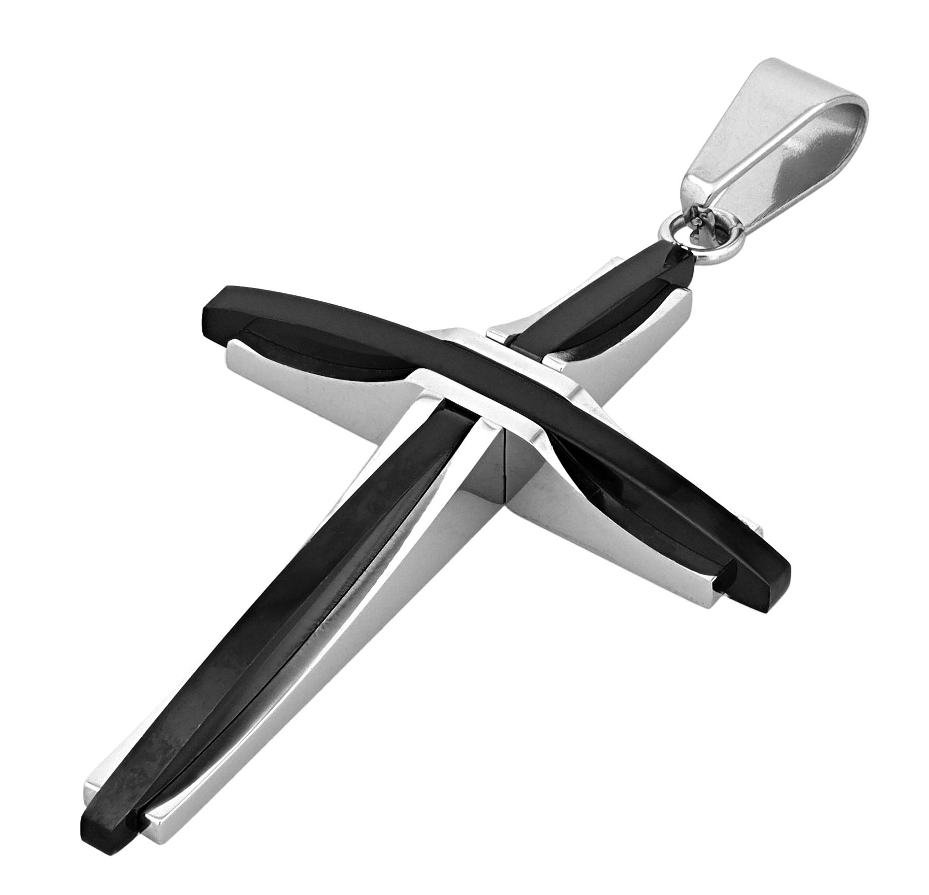 Productinformatie ""Wyat" roestvrijstalen hanger, massief kruis, tweekleurig (zilver/zwart)"
