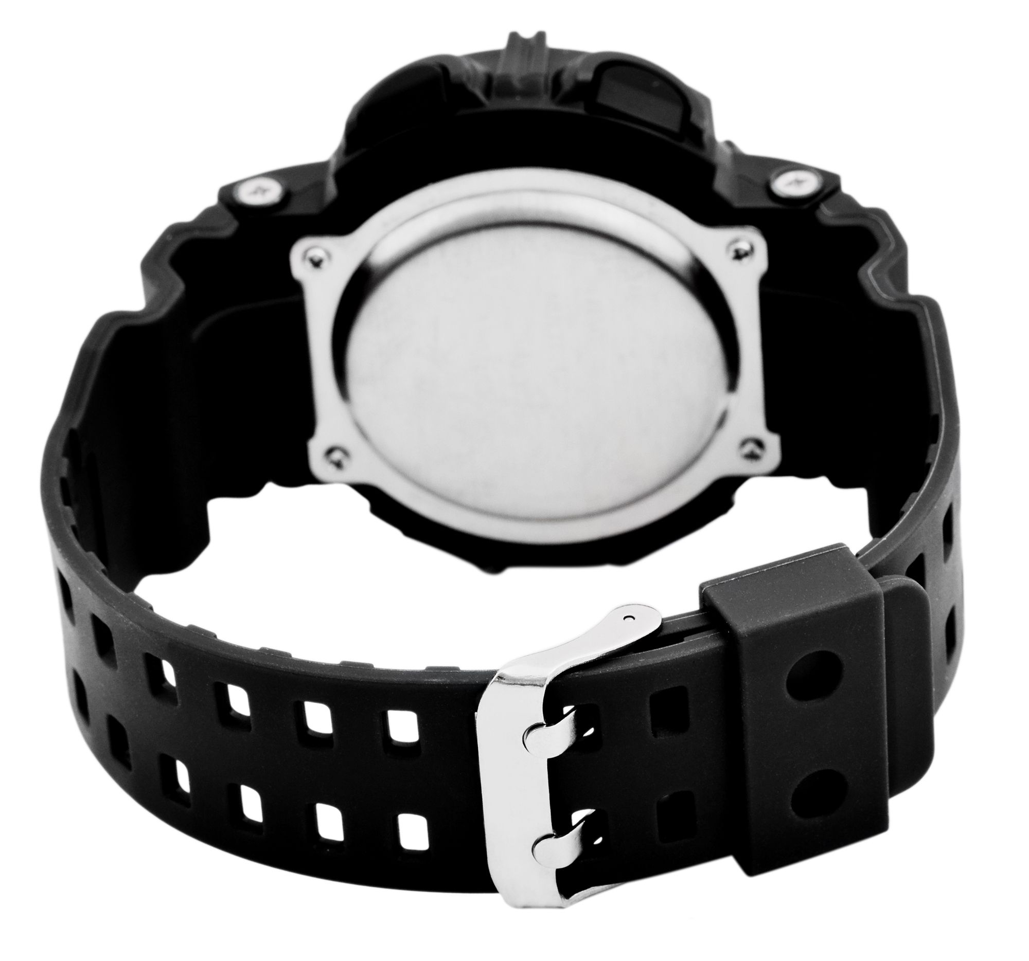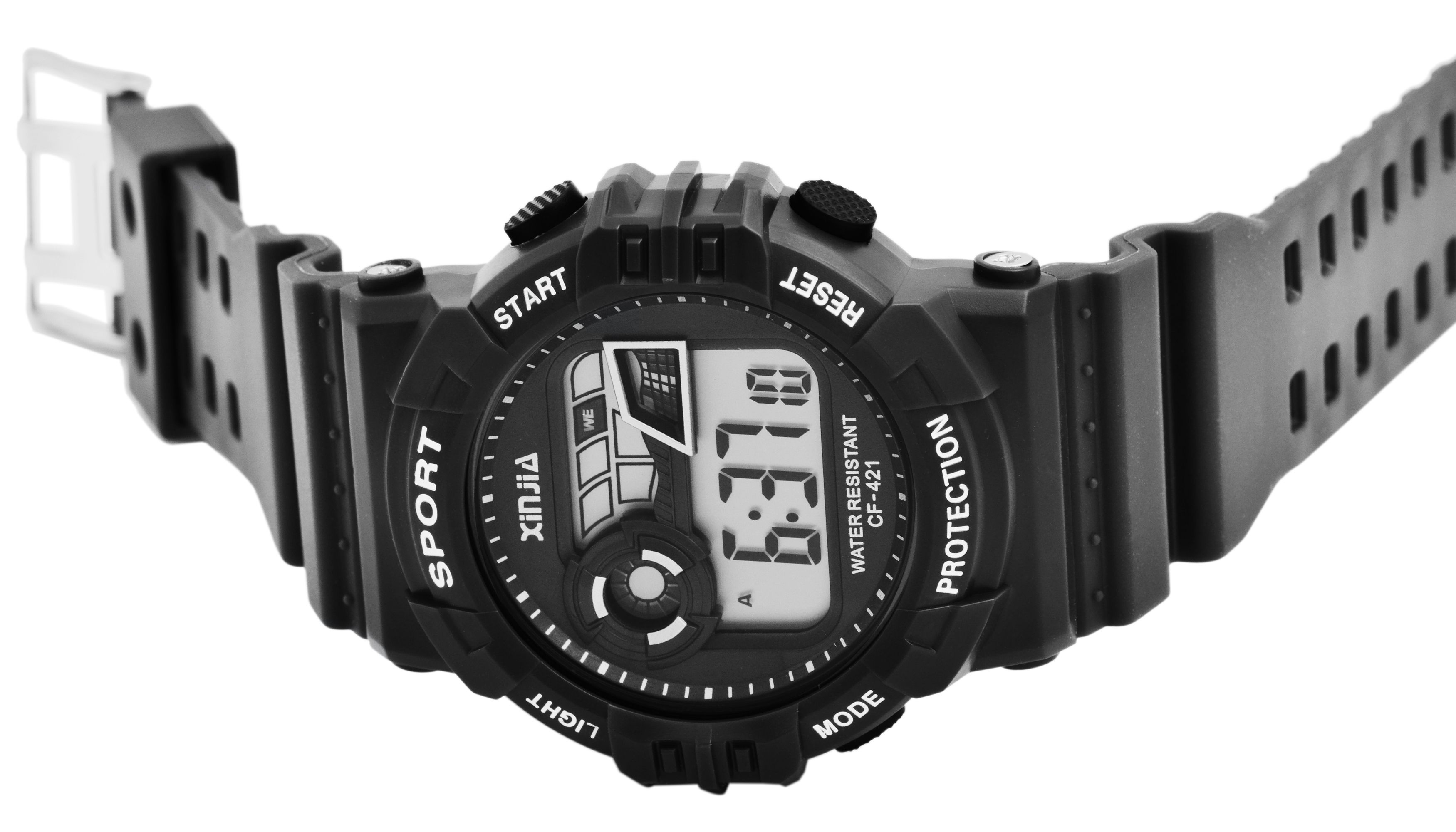 Het digitale herenpolshorloge van het merk Xinjia heeft een hoogwaardig kwartsuurwerk. De siliconen band is 29 mm breed bij de lug en kan worden geopend en gesloten met een zilverkleurige gesp. De totale lengte van het horloge is 26 cm. De kunststof kast heeft een diameter van 46 mm en een kasthoogte van 16 mm. Het horloge is bijzonder goed bestand tegen schokken en trillingen. De achterkant van de kast is gemaakt van roestvrij staal en is aan de kast bevestigd met vier roestvrijstalen schroeven. Het horloge is spatwaterdicht. De digitale tijd kan worden ingesteld met de vier drukknoppen, die gelijkmatig verdeeld zijn over de buitenrand van de kast. De drukknoppen kunnen ook worden gebruikt om alle andere functies in te stellen, zoals de displayverlichting, de stopwatchfunctie en de alarmfunctie. Dankzij de lichtfunctie is de tijd bijzonder gemakkelijk af te lezen, zelfs in het donker. De wijzerplaat heeft dezelfde kleur als de kast en band en is voorzien van één groot en drie kleinere digitale velden. Deze velden tonen de tijd, datum, dag van de week, seconden, stoptijd en alarmtijd. De weergave in de digitale velden verandert afhankelijk van de ingestelde modus. Het Xinjia digitale horloge is een robuust horloge dat dankzij de vele functies op verschillende manieren kan worden gebruikt. Het is bijvoorbeeld ideaal voor hardlopen, fietsen of wandelen.