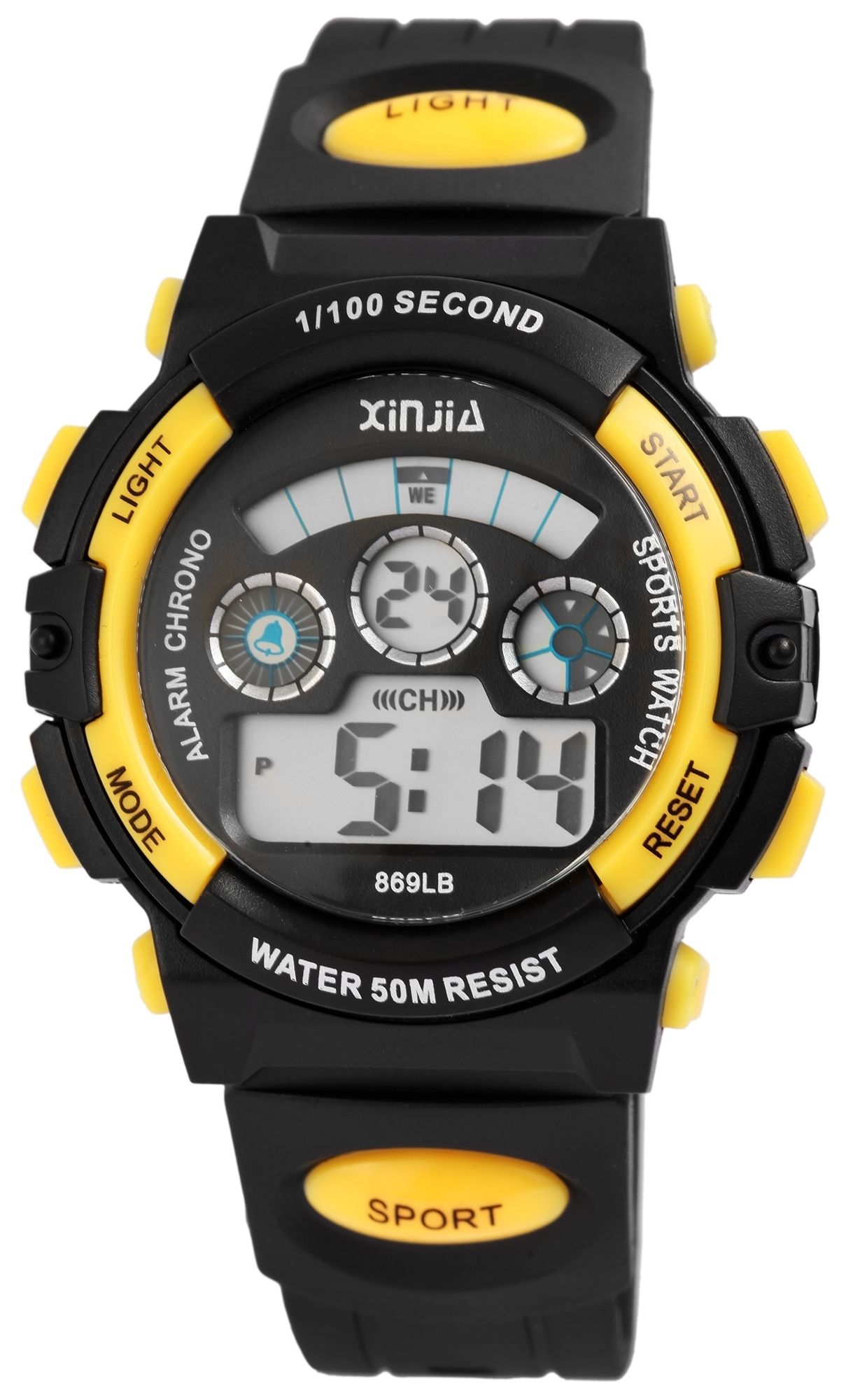 Xinjia Digitaluhr mit Silikonarmband in schwarz/gelb