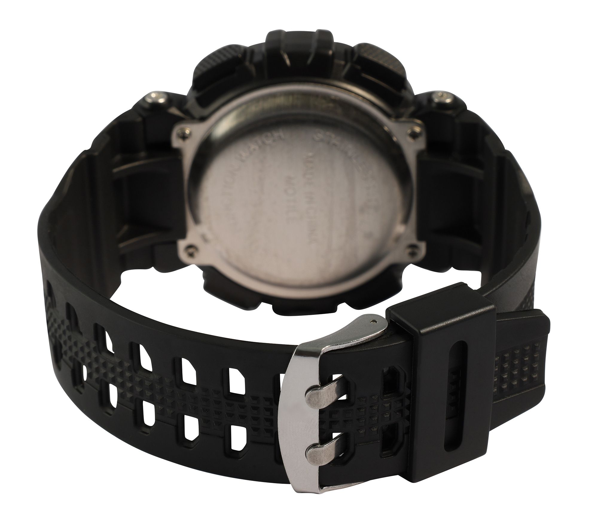 De TPU band combineert de flexibiliteit van siliconen met de duurzaamheid van kunststof. Het heeft een breedte van 28 mm bij de lug en wordt stevig vastgemaakt met een gesp. De totale lengte van het horloge is 26 cm, terwijl de kast een diameter van 46 mm en een hoogte van 18 mm heeft. De kast is gemaakt van kunststof, terwijl de achterkant van roestvrij staal is, waardoor het horloge huidvriendelijker en duurzamer is.