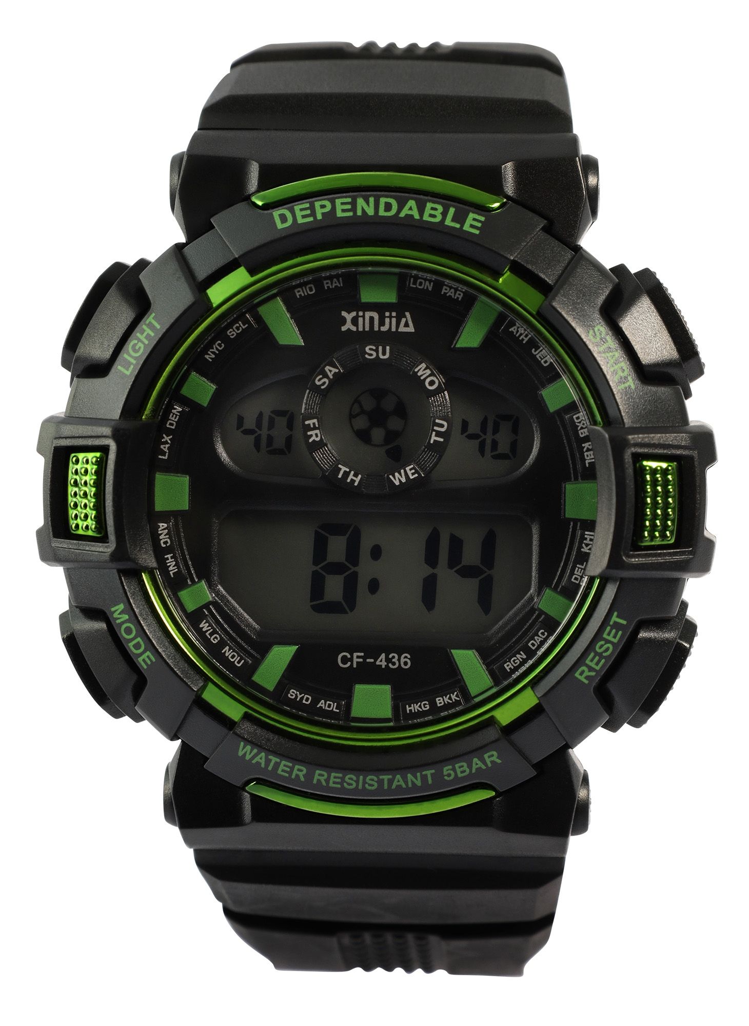 Het digitale horloge van Xinjia combineert een digitaal horloge met een TPU band en vele handige functies.