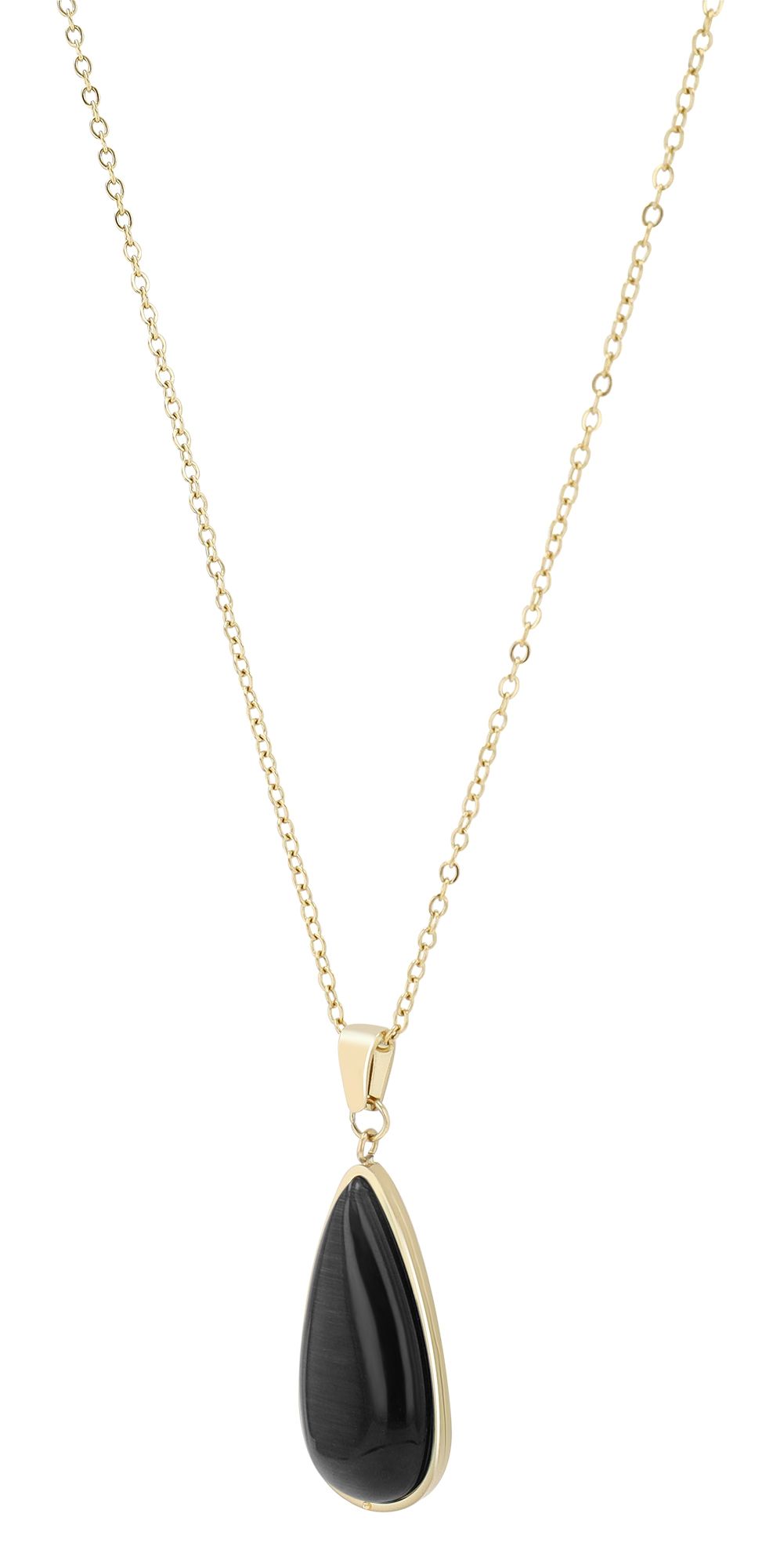 Productinformatie ""Zaraïa" accent stainless steel sieradenset met kattenoog, ketting & oorbellen, goudkleurig"