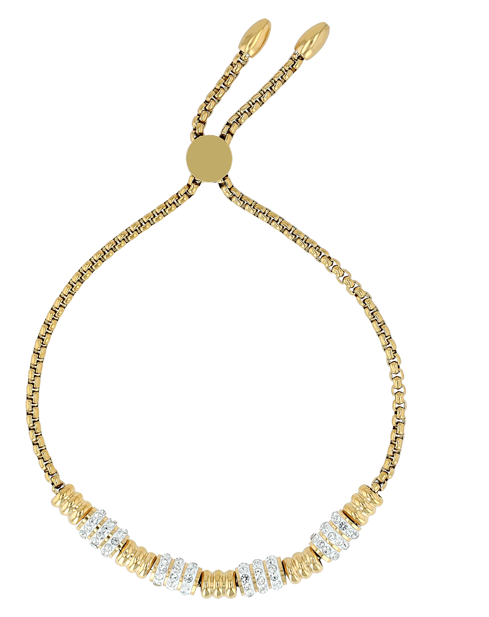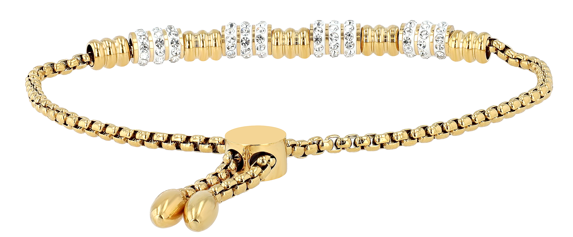 Productinformatie ""Rakel", Akzent Edelstahlarmband, Beads, Similibesatz, Ziehverschluss, goldfarben, 24 cm"