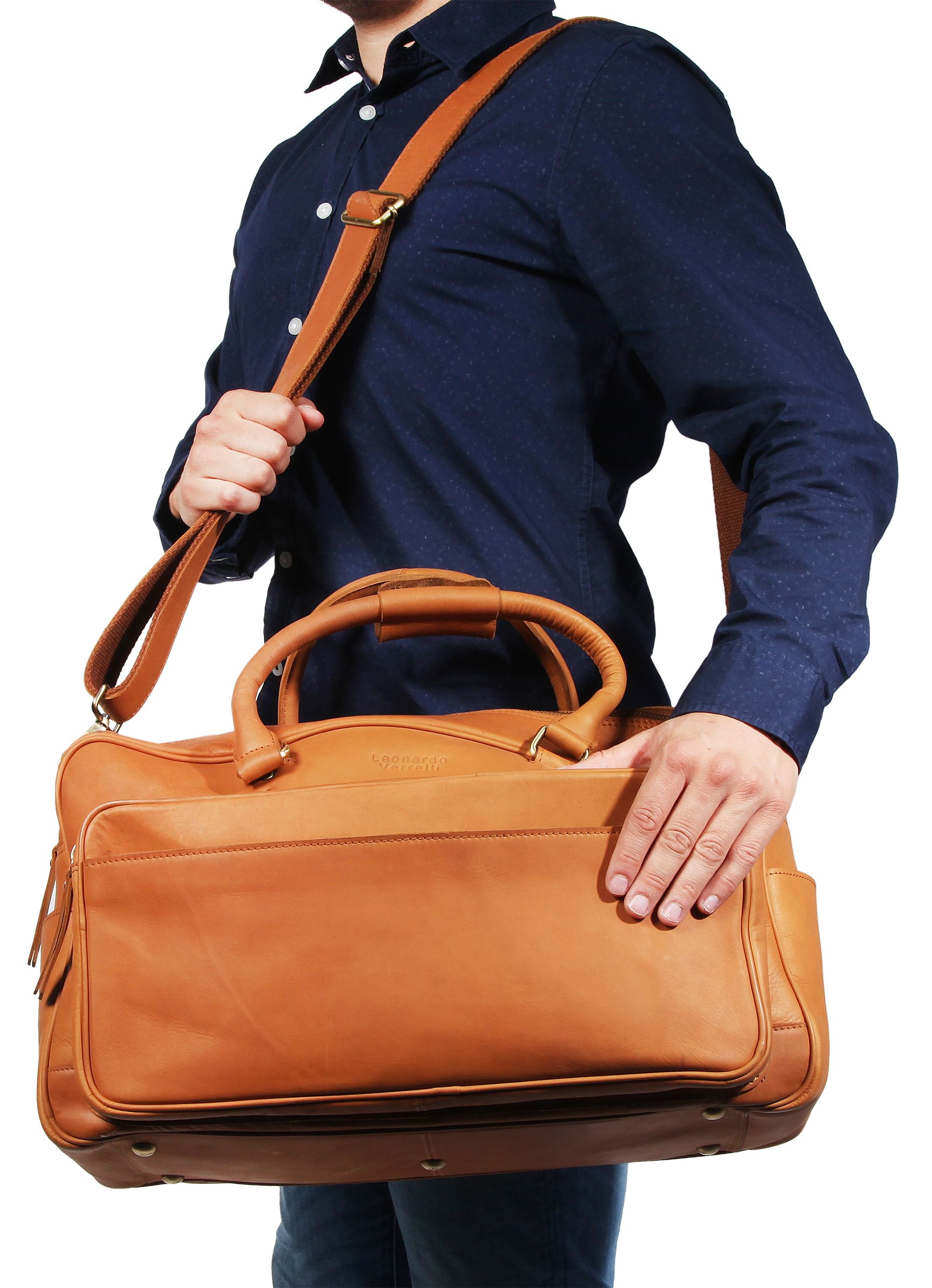 Productinformatie "Leonardo Verrelli handtas van echt leer, bruin"