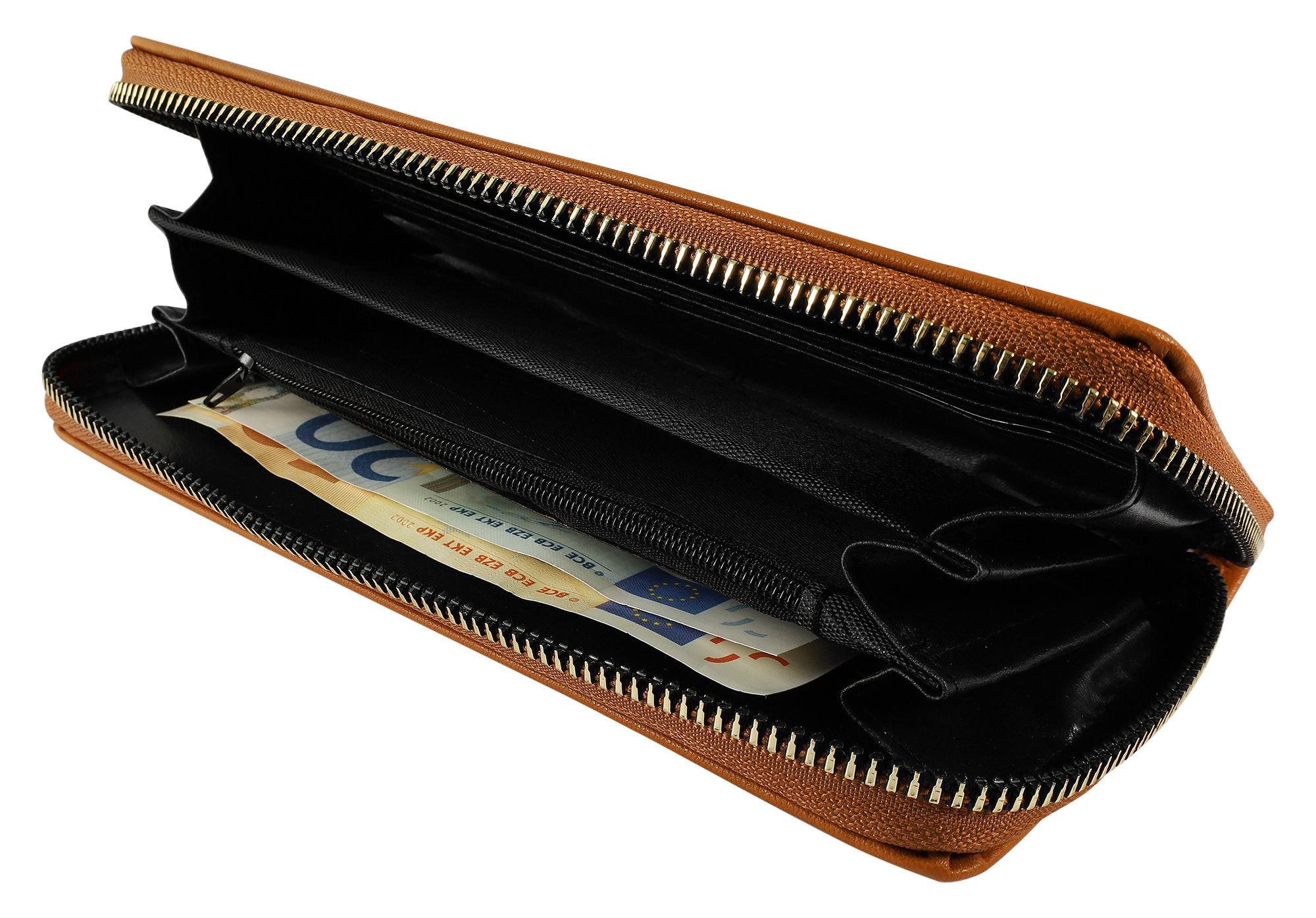 Productinformatie "Damengeldbörse aus Lederimitat, schlichtes Design, braun"