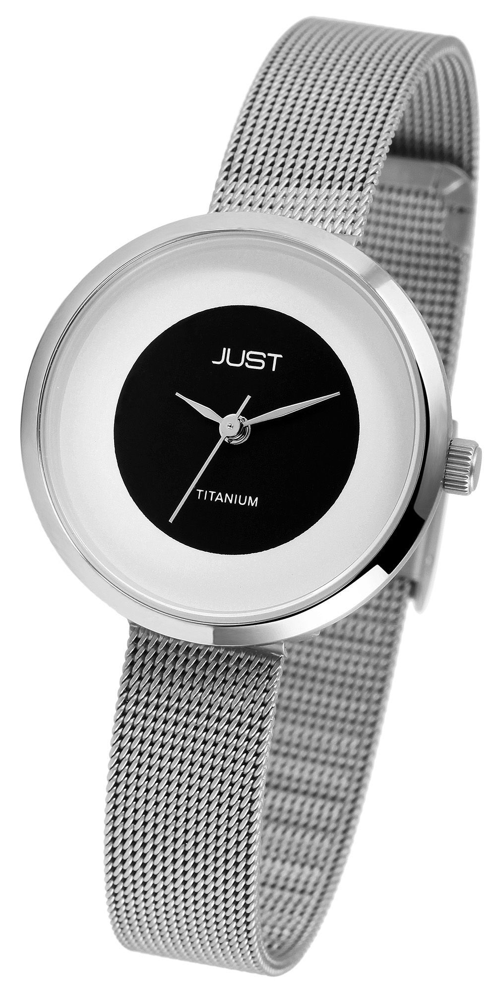 Productinformatie "Just "Remary" Titan Damenuhr mit Edelstahl Meshband, silberfarbig/ Schwarz"