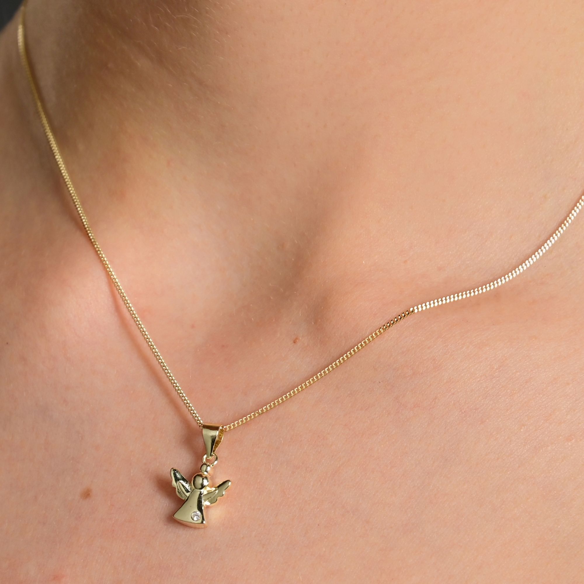 Productinformatie ""Elva" 925/- Echt Silber Anhänger Engel mit Zirkoniabesatz, vergoldet"