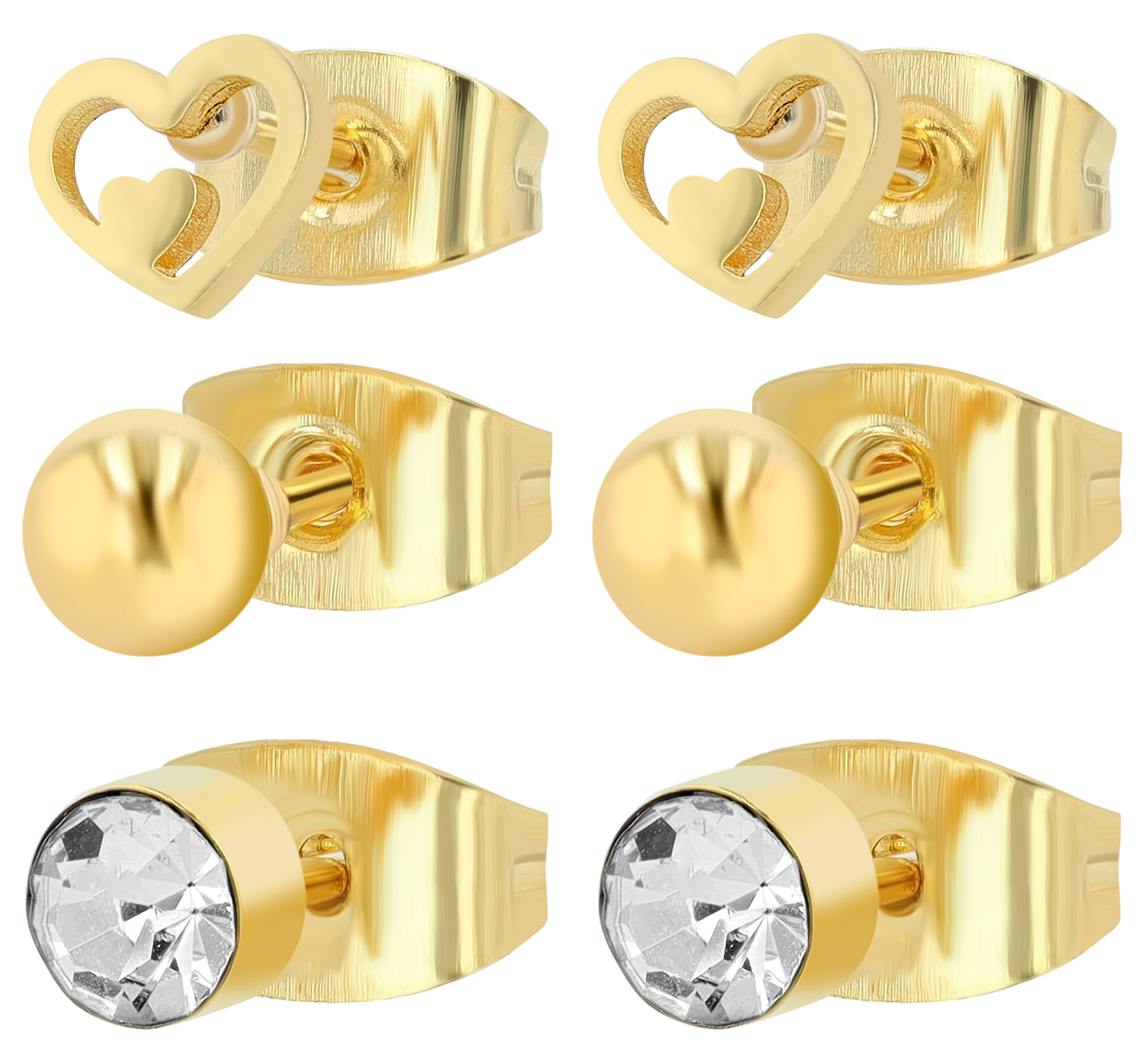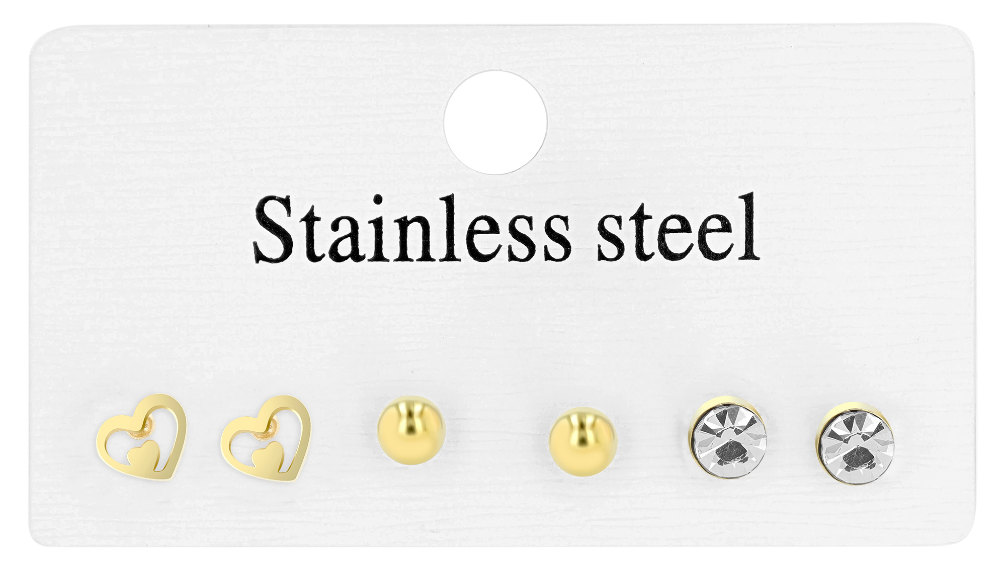 Productinformatie ""Soleil", Edelstahl Ohrstecker, 3 Paar, goldfarbig (VE12)"