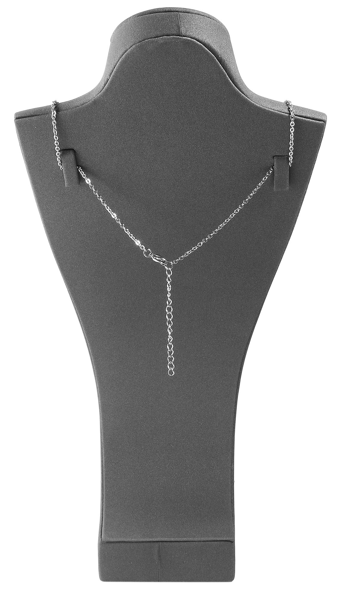 Deze sieradenbuste is ideaal voor het presenteren van kettingen, chokers en hangers. Met zijn compacte afmetingen van 26,5 x 13,5 x 7 cm is hij zeer veelzijdig. De neutrale maar elegante look vestigt de aandacht direct op je product. Twee praktische haken aan de achterkant houden de kettingen stevig in de gewenste positie.