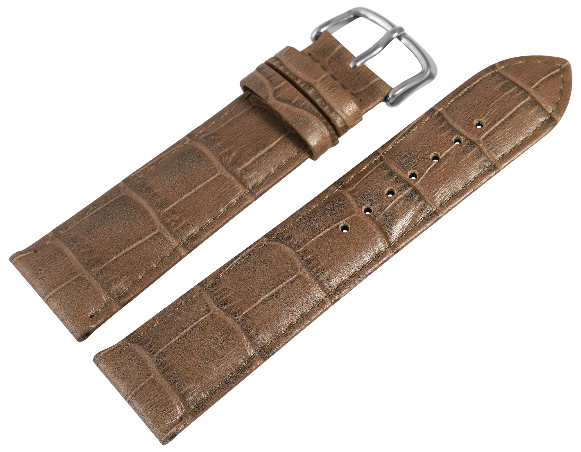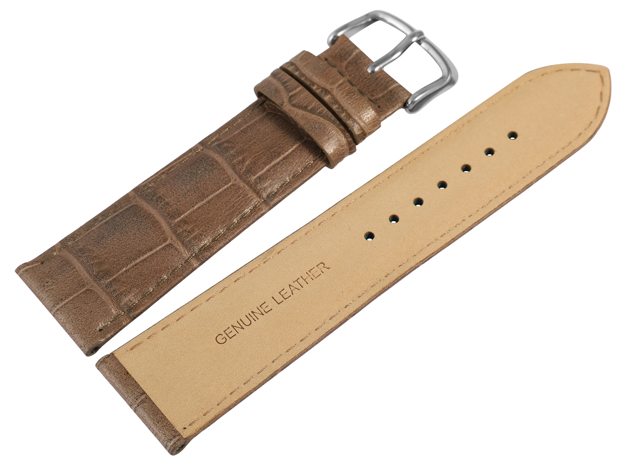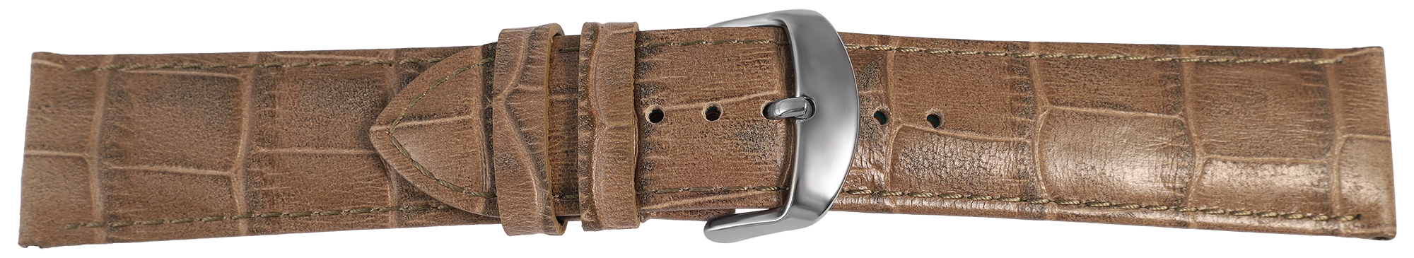 Productinformatie "Uhrenarmband aus Echt Leder, Kroko-Optik, taupe, 20 mm"