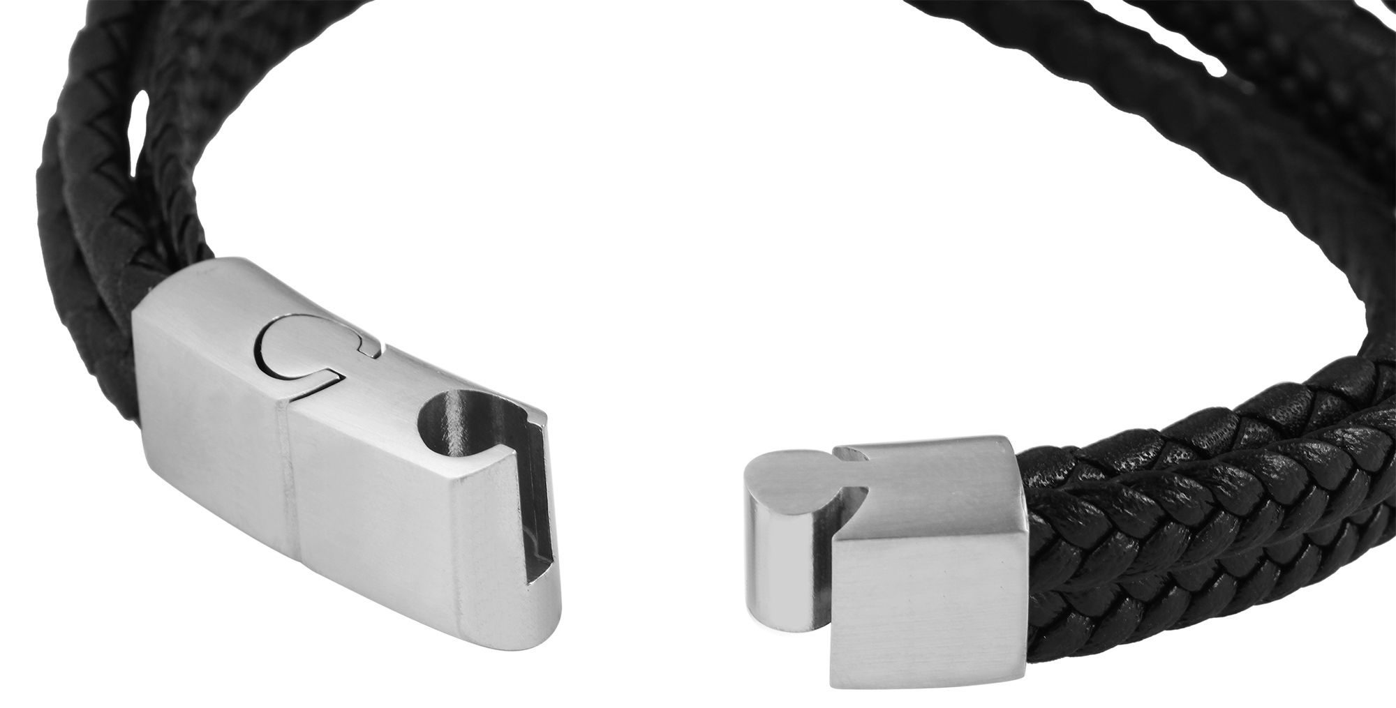 Productinformatie "Akzent Echtlederarmband in schwarz mit Magnetschließe"