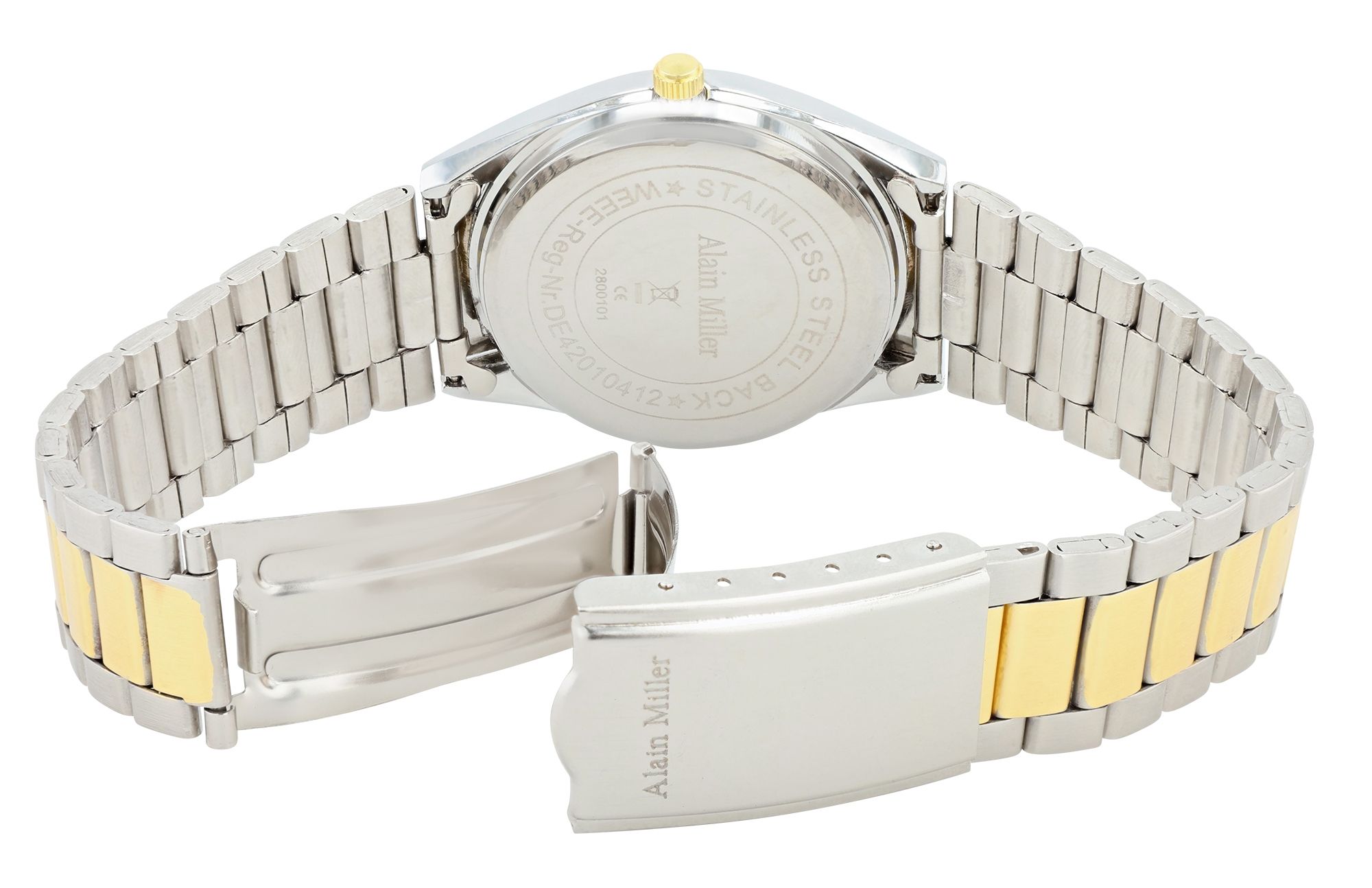 Alain Miller Unisexuhr mit Metallband, Ø 36,5 mm, bicolor/ goldfarben