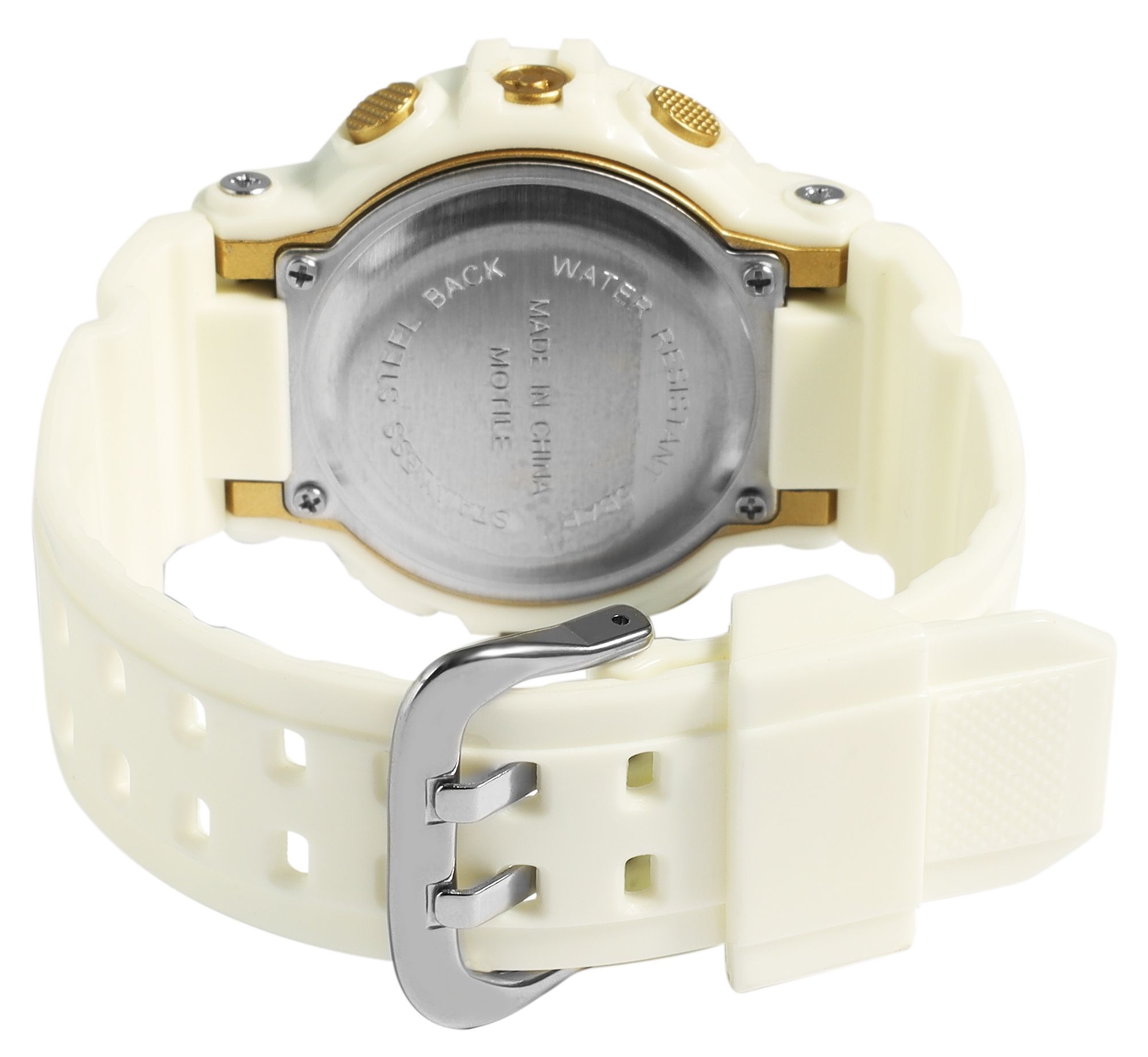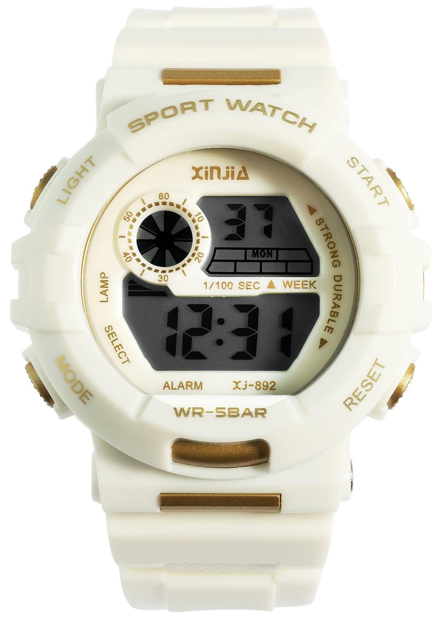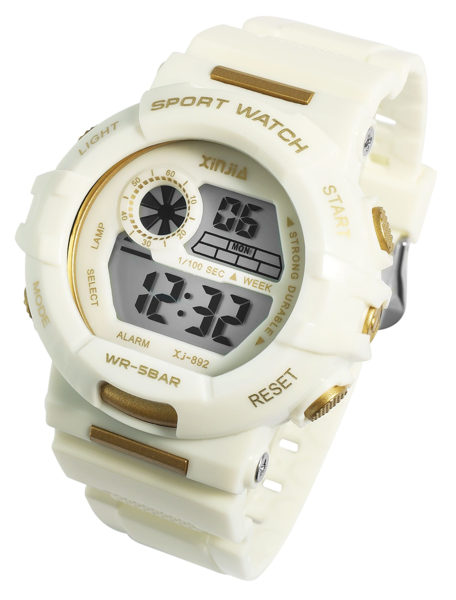 Productinformatie "Xinjia Unisexuhr Digitaluhr mit Silikonband, Weiß/ goldfarbig"