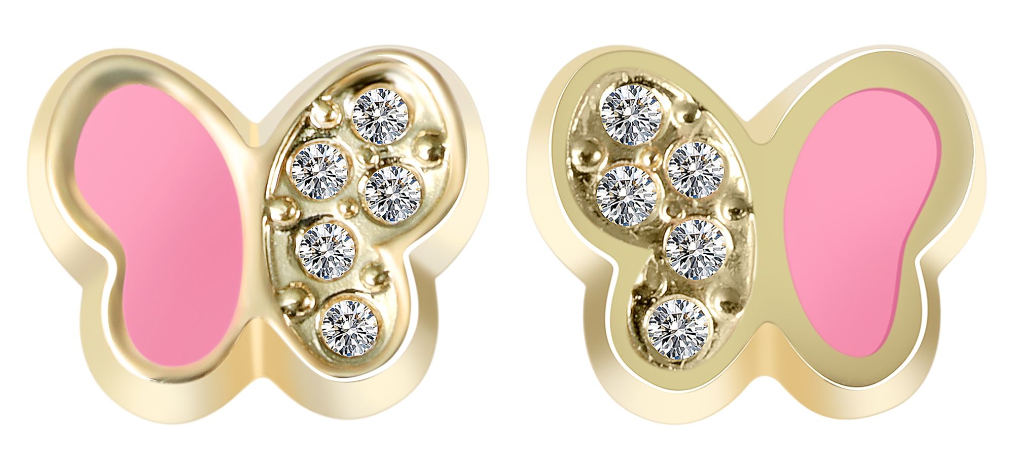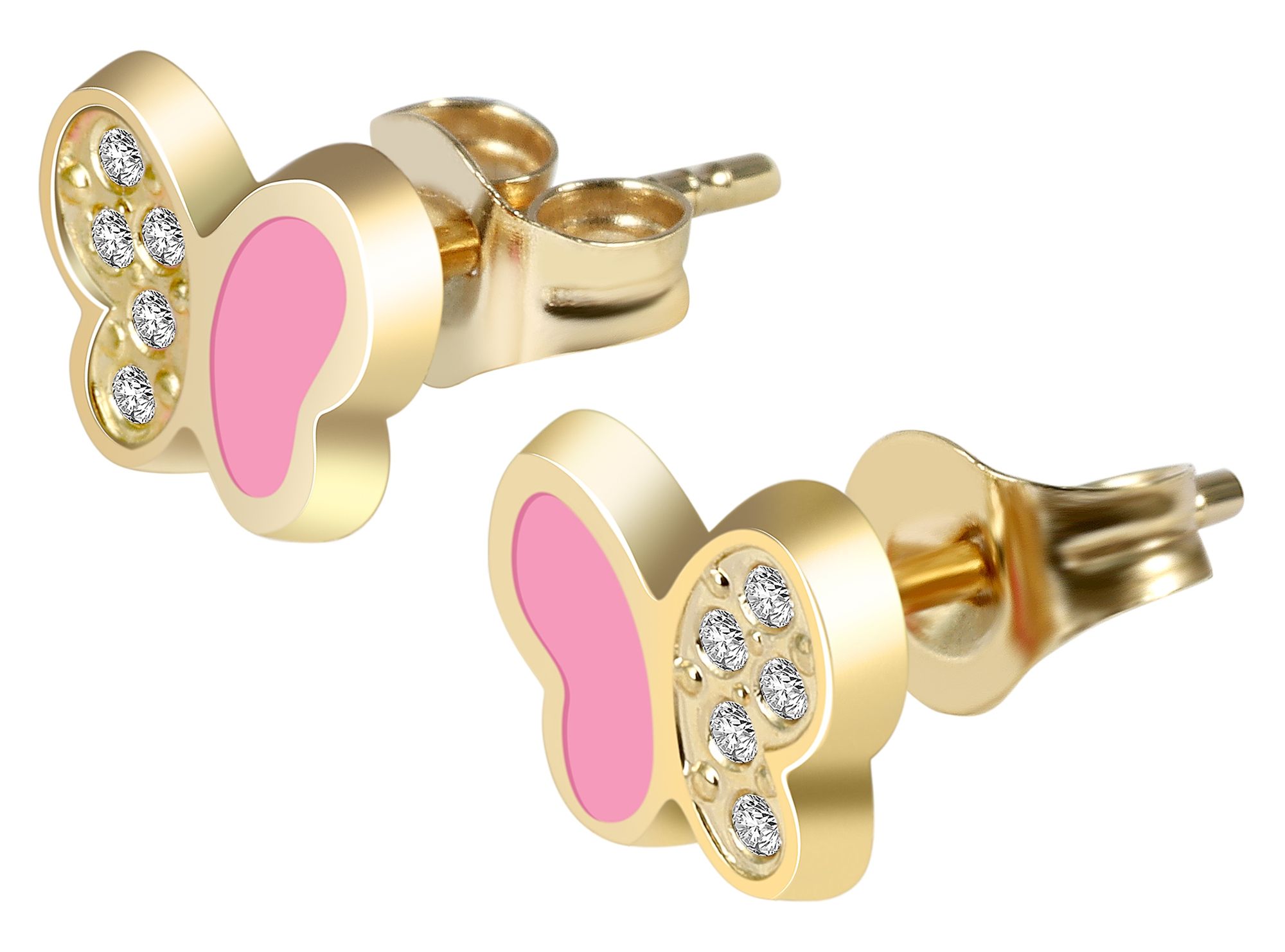 Productinformatie "333/- Gold "Mahila" Ohrstecker, Schmetterling mit Zirkonia & Emaille, Gelbgold, 8 Karat, Kinder"