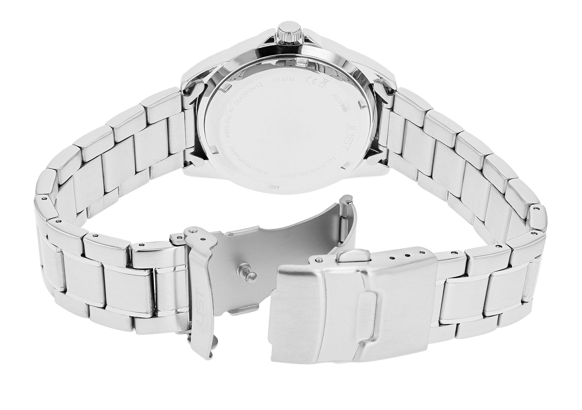Productinformatie "JUST "Mads" Herren Edelstahluhr mit Edelstahlband und Saphirglas, 10 ATM, silberfarbenes ZB"